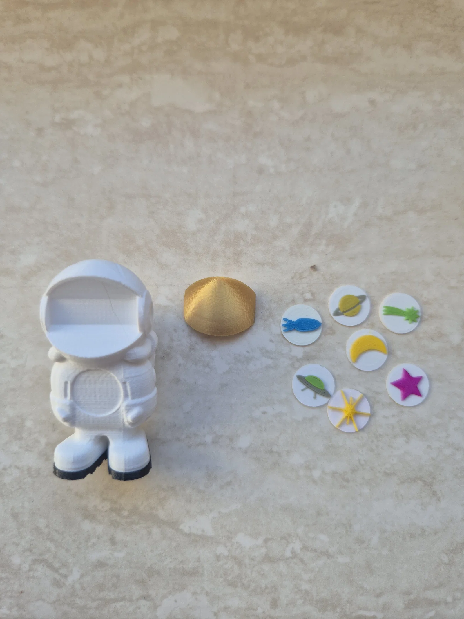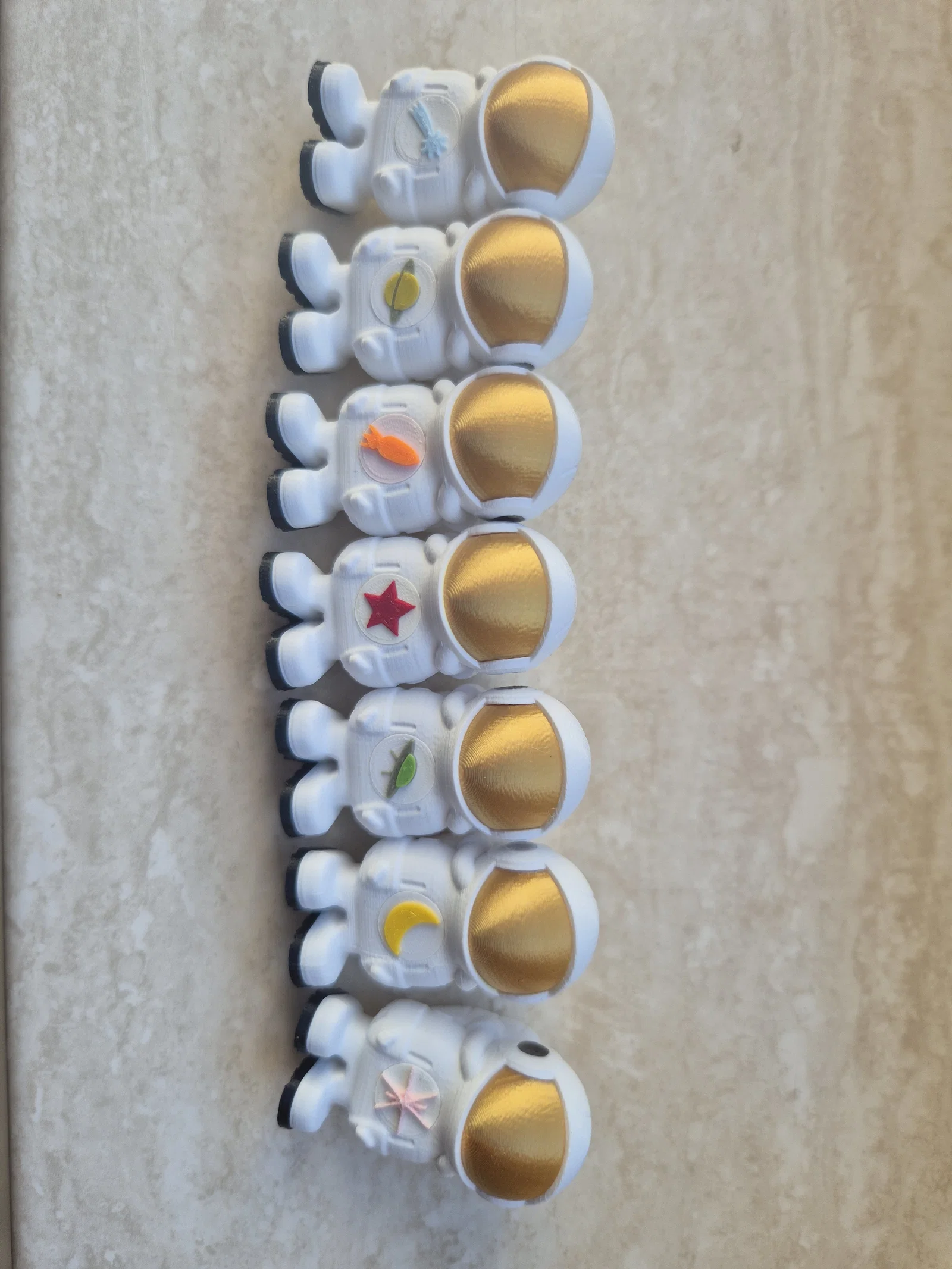 Mô hình phi hành gia 3 mảnh cực kỳ đáng yêu, hoàn hảo để làm móc khóa. Bạn có thể in bằng nhựa PLA và tùy chỉnh màu sắc theo ý thích để tạo ra món quà nhỏ xinh cho các bé.