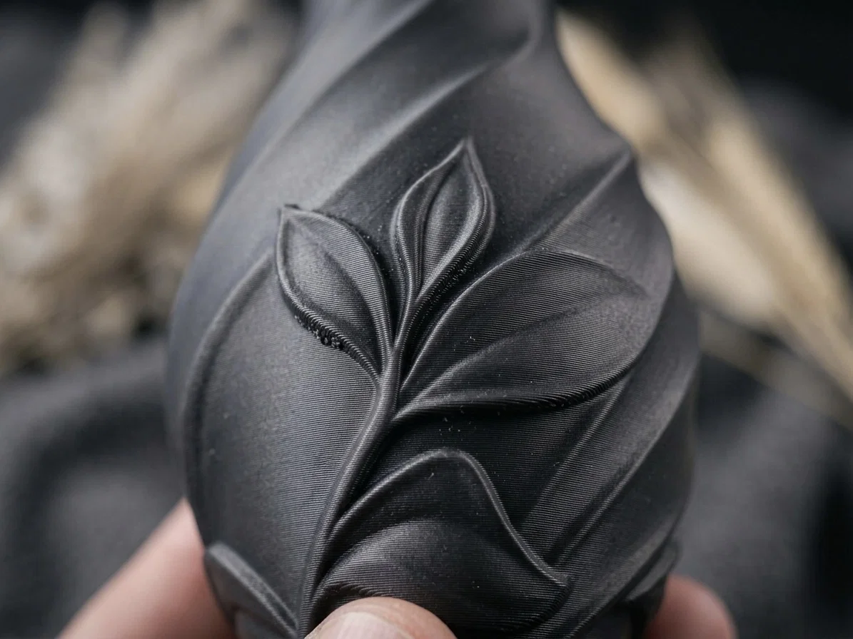 - Vật liệu đề xuất: Nên dùng nhựa PLA hoặc PETG. PLA với màu sắc lì (matte) sẽ làm tôn lên các đường nét chạm trổ trên bề mặt bình rất hiệu quả.