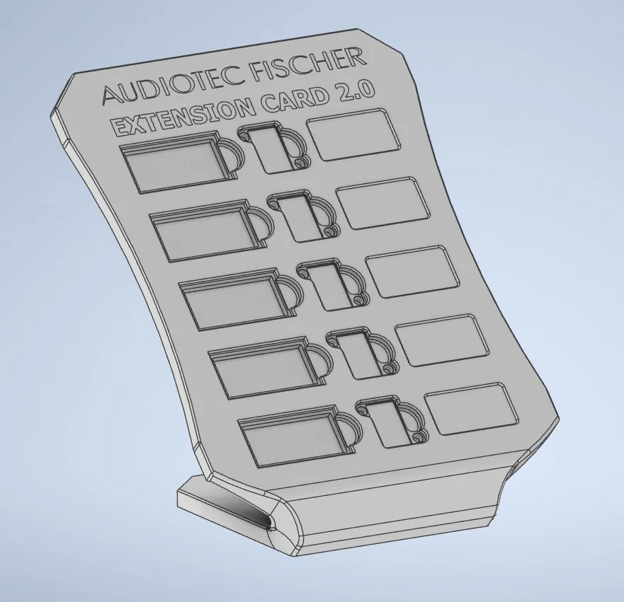 Nếu bạn là một tín đồ của âm thanh xe hơi và đang sở hữu hệ thống các thẻ mở rộng của Audiotec Fischer, thì việc quản lý và trưng bày chúng một cách gọn gàng là điều rất quan trọng. Mẫu giá đỡ (stand) này được thiết kế riêng biệt để giúp bạn sắp xếp các Extension Card 2.0 một cách chuyên nghiệp ngay trên bàn làm việc hoặc kệ trưng bày. Không chỉ giữ cho các thẻ của bạn không bị thất lạc, giá đỡ còn biến những linh kiện kỹ thuật thành một vật phẩm decor độc đáo, thể hiện phong cách đam mê công nghệ âm thanh của người chơi.