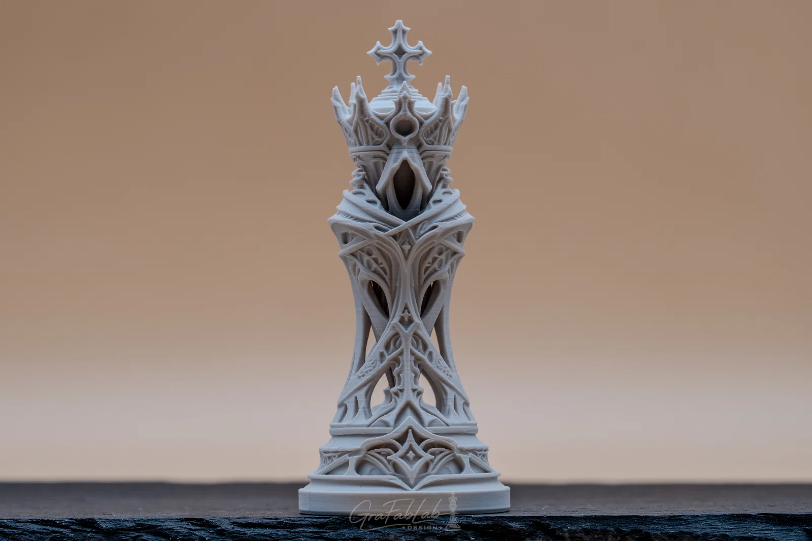 Nếu bạn muốn sở hữu mô hình này hoặc khám phá thêm nhiều tác phẩm khác của tụi mình, bao gồm các bộ sưu tập tượng đầy đủ, thiết kế độc quyền, giấy phép thương mại và nhiều đặc quyền hấp dẫn khác, bạn có thể tìm thấy tất cả trên Patreon—hẹn gặp bạn ở đó nhé: https://www.patreon.com/cw/GraFabLab The Shadow Sovereign chính là trái tim của Eclipse Court. Chiếc vương miện hình hài xương xẩu, bộ giáp tựa khung sườn cùng những đường nét chạm khắc viền vàng đã tạo nên một vị quân chủ như được tạc từ loại đá đen tối nhất của thánh đường. Ngài di chuyển với sức nặng đầy uy nghiêm — mỗi bước chân là một sắc lệnh vang vọng khắp những căn sảnh dát vàng của vương quốc. Nếu Sovereign ngã xuống, nhật thực sẽ chấm dứt.