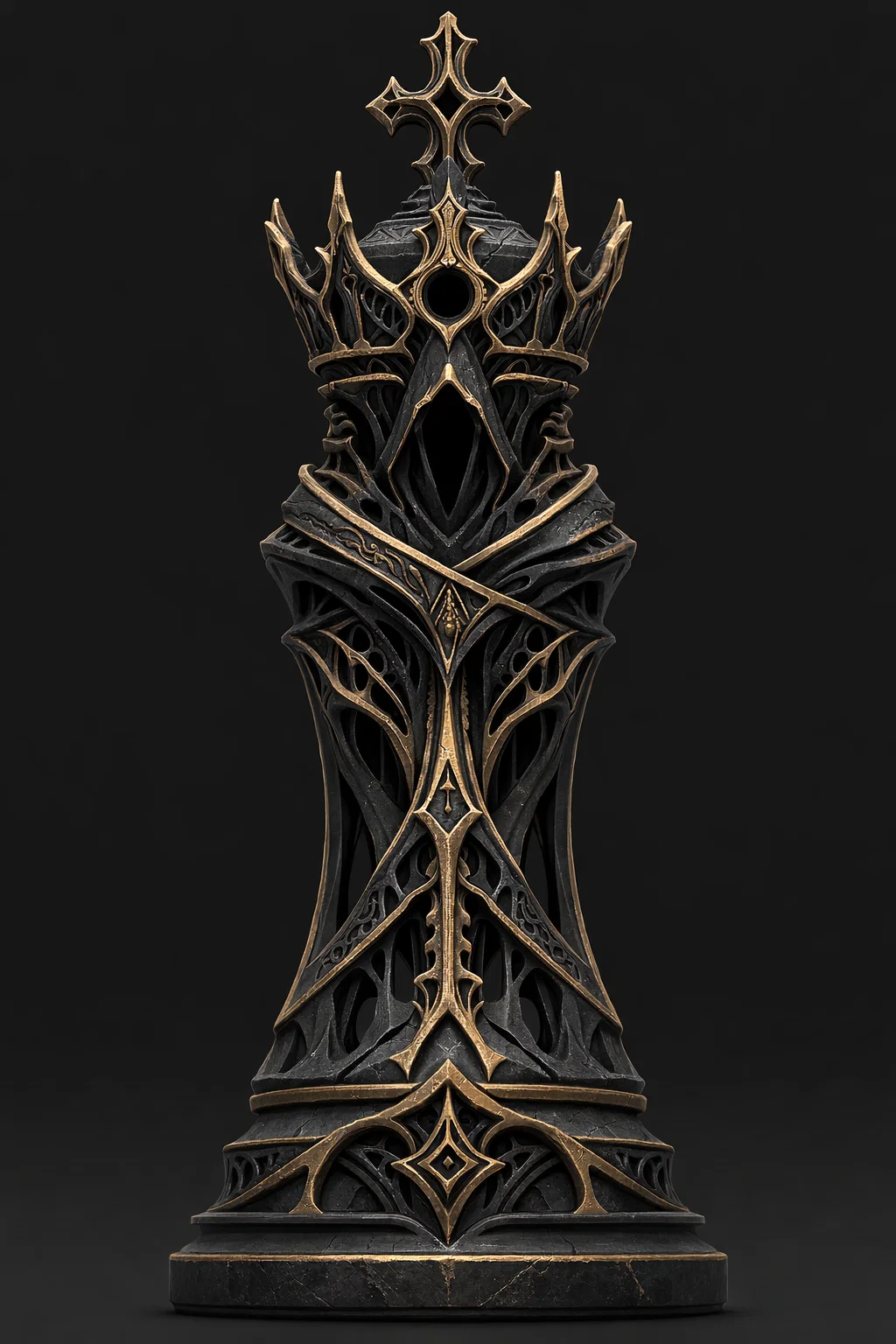 Vị quân chủ ngự trị được đúc kết từ kim loại obsidian cùng quyền uy mạ vàng. Đây là mảnh ghép không thể thiếu của bộ cờ Eclipse Court, mang đậm hơi thở của một vị vua quyền năng bước ra từ những thánh đường u tối.