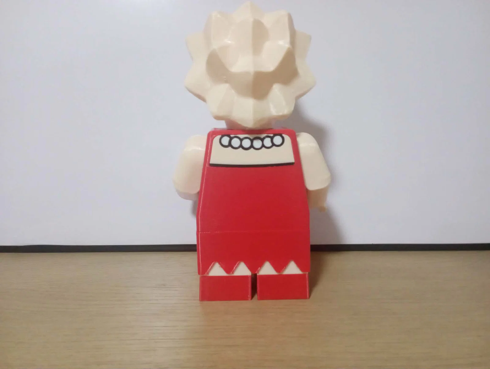 Mô hình được thiết kế dựa trên hình ảnh nhân vật Lisa với các chi tiết đặc trưng như mái tóc hình răng cưa nhọn, đôi mắt to tròn biểu cảm và chiếc váy đỏ rực rỡ. Với thiết kế theo phong cách minifigure, sản phẩm này gợi lại cảm giác hoài niệm về tuổi thơ khi chúng ta thường lắp ráp những mảnh ghép nhỏ. Khi in 3D với kích thước phóng đại, các đường nét của nhân vật trở nên sắc sảo và dễ nhìn hơn, giúp nó trở thành tâm điểm thu hút mọi ánh nhìn khi đặt trên bàn học hay tủ kính.