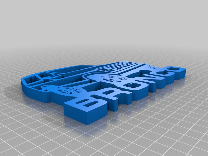 Sản phẩm này mang đến sự tinh tế với kiểu dáng hình khối nổi, làm rõ tên xe "Bronco" một cách sắc nét. Bề mặt sản phẩm được tối ưu hóa để việc in 3D trở nên dễ dàng và đạt kết quả thẩm mỹ cao nhất. Dù bạn là người mới bắt đầu làm quen với máy in 3D hay là một dân chuyên nghiệp, mẫu thiết kế này đều cho phép bạn tạo ra một thành phẩm ưng ý chỉ trong vài giờ đồng hồ. Các góc cạnh được bo tròn hài hòa, tạo cảm giác chuyên nghiệp khi bày trí trong bất kỳ không gian nội thất nào.