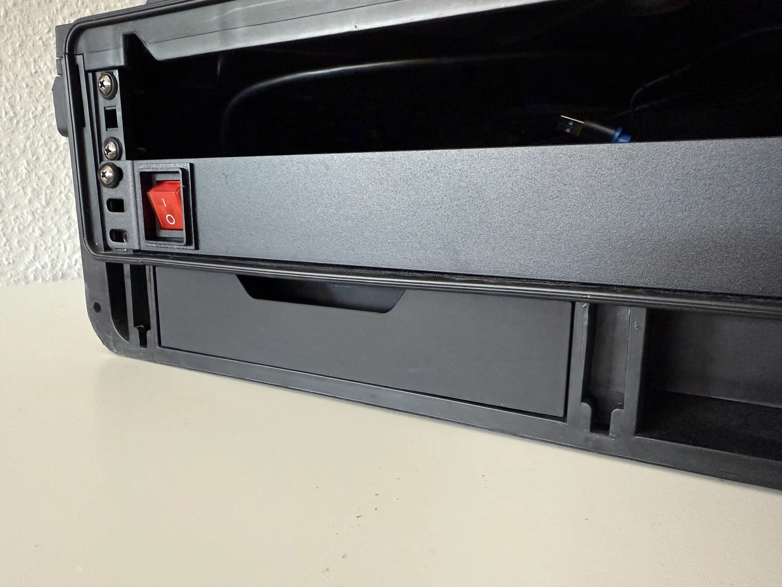 Việc lắp đặt ngăn kéo này rất đơn giản, bạn chỉ cần in 3D ra và đặt nó vào đúng vị trí trống đã có sẵn trên case. Với kích thước thiết kế chuẩn xác, ngăn kéo không chỉ khít khao mà còn tạo nên một vẻ ngoài đồng bộ, gọn gàng cho thiết bị của bạn. Bạn có thể tận dụng không gian này để chứa những vật dụng nhỏ cần thiết như cáp kết nối ngắn, đầu chuyển đổi, bút viết hoặc các linh kiện nhỏ khác mà trước đây thường hay bị thất lạc.