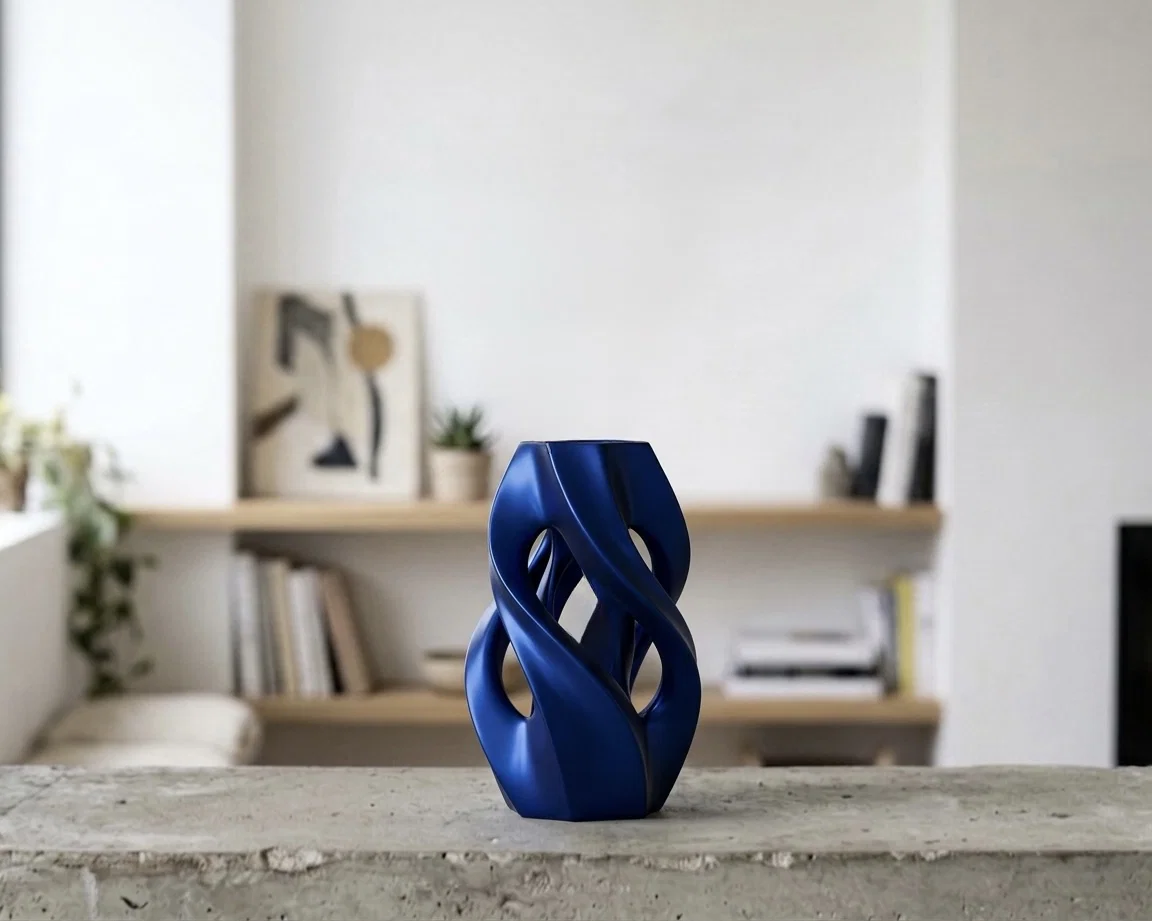 Chiếc lọ hoa này là một tác phẩm nghệ thuật 3D đầy ấn tượng, được thiết kế với những đường nét uốn lượn tinh xảo tạo cảm giác chuyển động không ngừng. Với hình dáng độc đáo, đây không chỉ là một vật dụng để cắm hoa thông thường mà còn là điểm nhấn thị giác hoàn hảo cho không gian sống của bạn. Dù đặt trên bàn làm việc, kệ sách hay bàn trà, sản phẩm này đều mang lại hơi thở hiện đại và sang trọng cho căn phòng. Bạn có thể sử dụng lọ để cắm các loại hoa khô, cành cây trang trí hoặc đơn giản là để trưng bày như một món đồ decor độc lập.