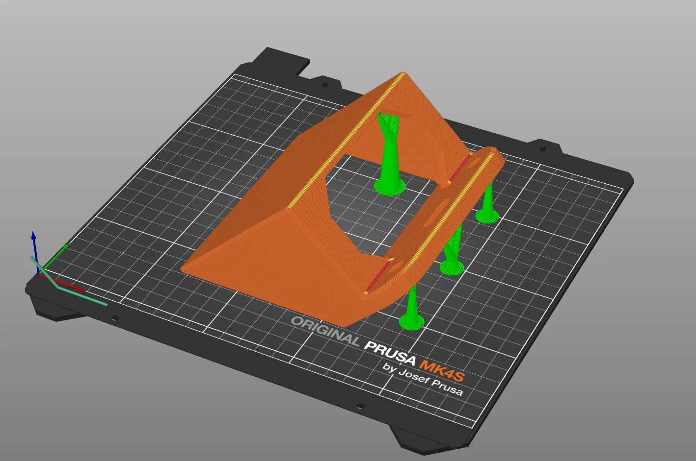 • Cấu trúc in: Thiết kế yêu cầu sử dụng hỗ trợ (support) để in phần ngàm giữ, như đã thấy trong hình ảnh mô phỏng trên phần mềm cắt lớp (slicer).