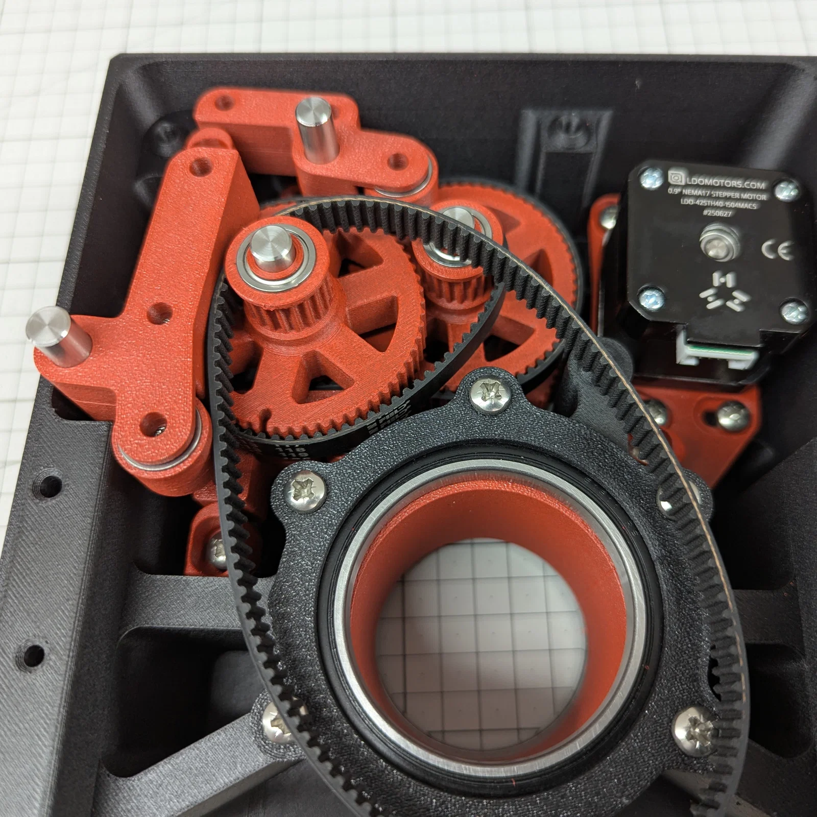 Ba mươi sáu vòng bi trên các trục DEC và RA giúp chuyển động mượt mà và không bị rung lắc. Đai truyền động Gates 3GT chính hãng được sử dụng cho mỗi tầng và được điều chỉnh độ căng riêng biệt để đạt hiệu suất tối ưu.