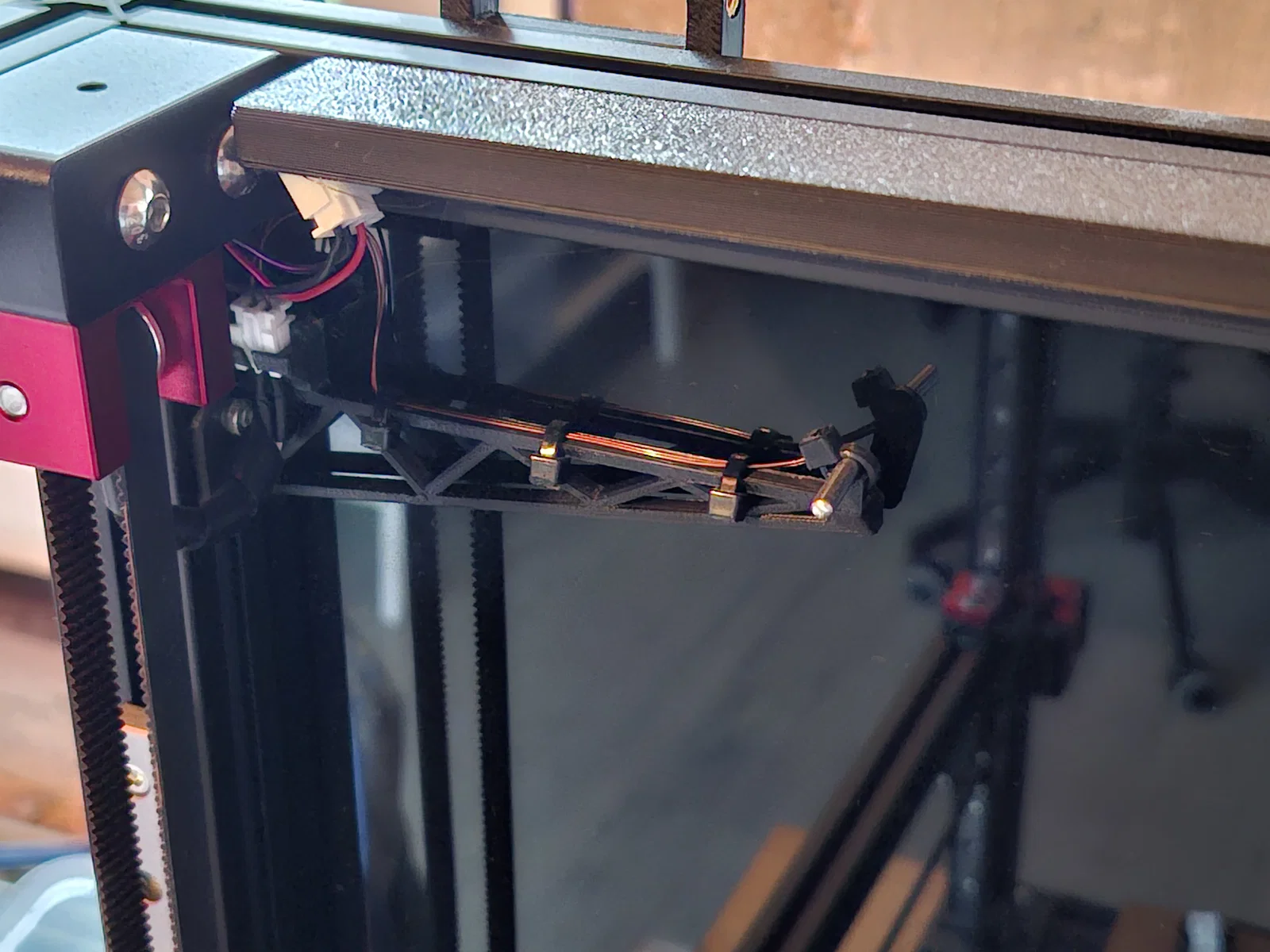 Phần gá cảm biến nhiệt độ này được thiết kế để gắn vừa các loại cảm biến nhiệt dạng ống (barrel-style), đồng thời hỗ trợ đầu nối JST XH 2-pin để đi dây. Bạn có thể dùng dây rút (zip ties) để cố định cảm biến và dây dẫn, còn đầu nối JST sẽ được giữ chặt bằng cơ chế kẹp ma sát. Bạn nên lắp bộ gá này ở góc trên bên trái buồng in, bắt vít trực tiếp vào thanh nhôm định hình bằng ốc M3 và đai ốc T-nut M3. Phụ kiện này cực kỳ hữu ích khi bạn in các loại nhựa như ASA hoặc ABS cần kiểm soát nhiệt độ buồng in. Hãy in bộ gá này bằng nhựa ASA hoặc các loại nhựa chịu nhiệt tốt khác; tuyệt đối không nên dùng PLA. ☕ Mời mình ly cà phê