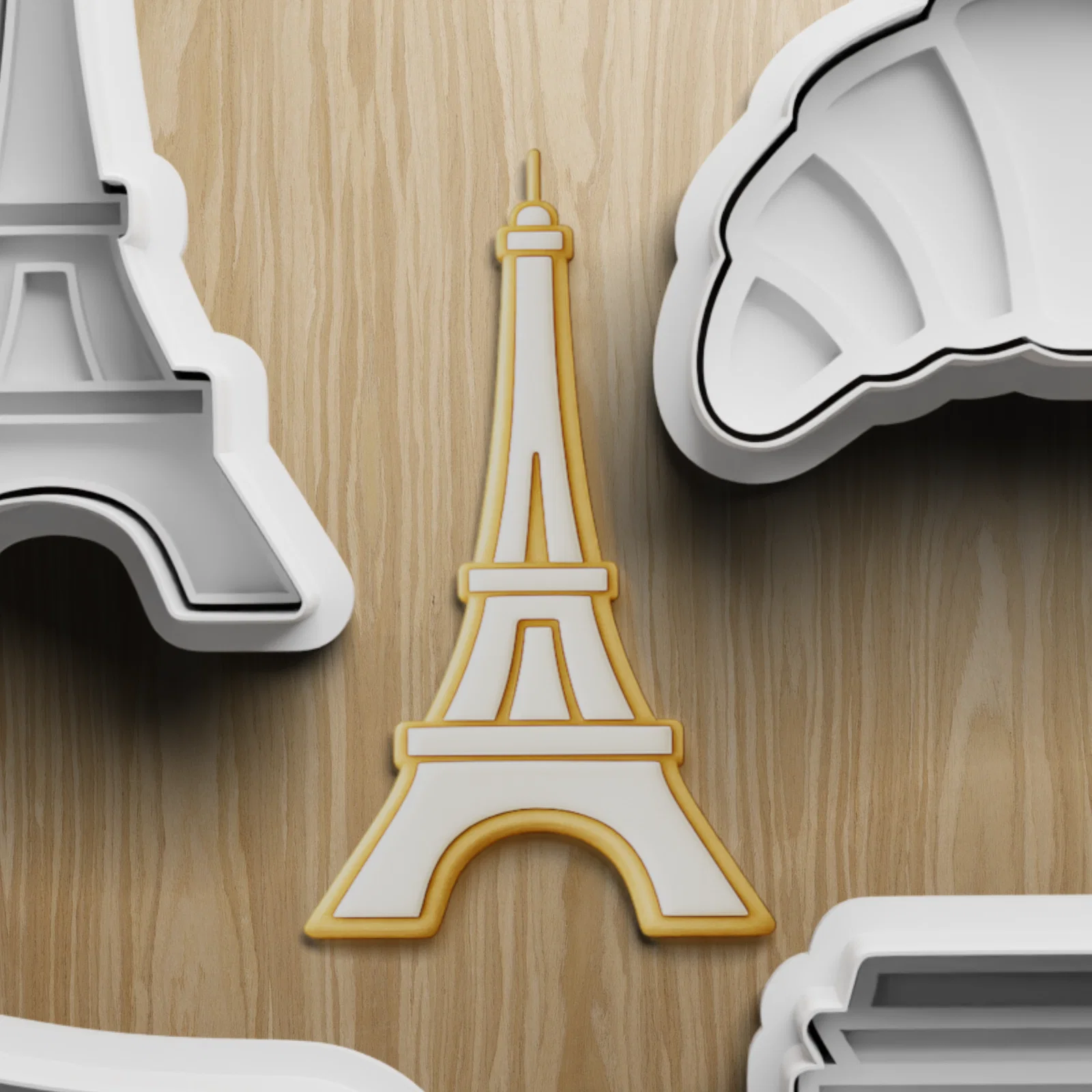 Bộ file STL khuôn cắt bánh chủ đề nước Pháp để in 3D, bao gồm các hình dáng lấy cảm hứng từ Paris như tháp Eiffel, bánh sừng bò (croissant) và các chi tiết danh thắng kiểu Khải Hoàn Môn. Bộ 4 khuôn cắt bánh STL này là lựa chọn thú vị cho các chủ đề làm bánh kiểu Pháp, người yêu du lịch và các dự án làm bánh hình danh thắng.