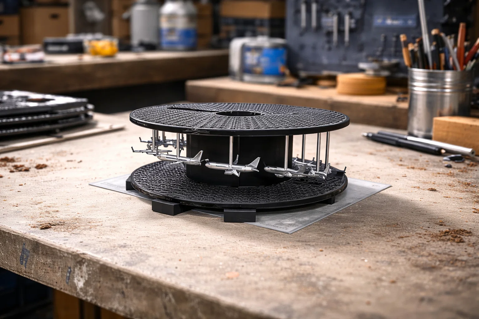 Bạn có bao giờ nghĩ đến việc tận dụng những cuộn dây in 3D cũ để tạo ra một món đồ chơi độc đáo hay chưa? Mẫu thiết kế "Prusament spool flying scene with Boeing 737" này chính là một giải pháp tuyệt vời để tái chế các cuộn nhựa cũ của bạn thành một mô hình cơ khí đầy thú vị. Với thiết kế sáng tạo, bạn có thể biến một cuộn dây bỏ đi thành một sàn diễn chuyển động nơi những chiếc Boeing 737 tí hon bay lượn.