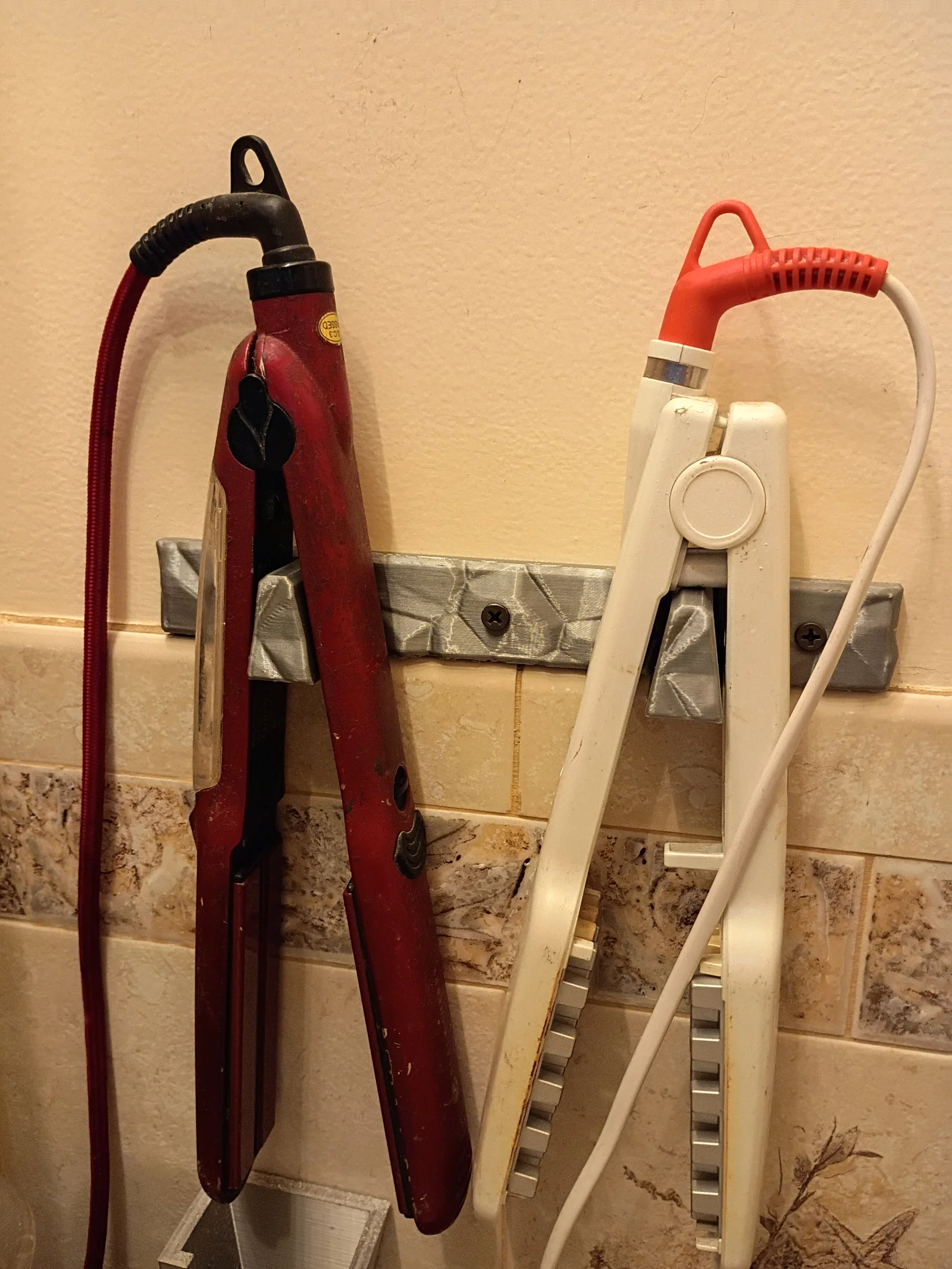 Nếu bạn đang cảm thấy phiền phức vì những chiếc máy duỗi tóc, máy uốn tóc cứ nằm bừa bãi trên bàn trang điểm hay kệ phòng tắm, thì đây chính là giải pháp đơn giản và hiệu quả dành cho bạn. Mẫu giá treo máy duỗi tóc đôi (Dual flat iron mount) này được thiết kế thông minh để giúp bạn tối ưu hóa không gian lưu trữ một cách gọn gàng nhất. Thay vì để máy va đập lung tung hoặc chiếm diện tích mặt bàn, bạn chỉ cần bắt vít giá treo này lên tường là mọi thứ sẽ ngăn nắp ngay lập tức.