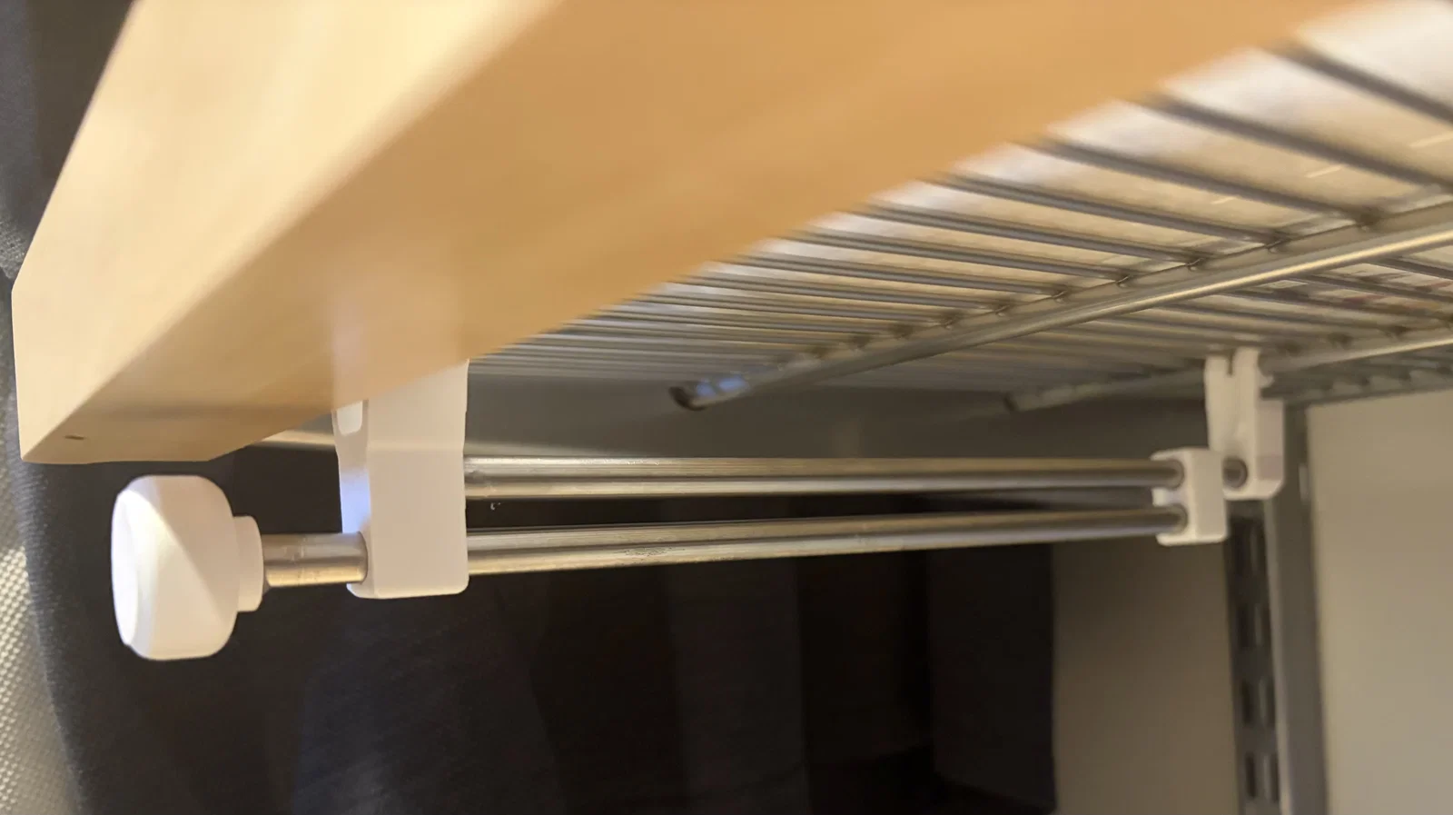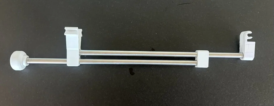 Móc treo áo trượt cho kệ lưới kim loại. Thiết kế dạng kẹp cố định vào vị trí. Bạn sẽ cần mua thêm thanh thép đường kính 8mm, dài 10 inch. Hãy dán cố định các thanh thép vào hai đầu. Đảm bảo các kẹp đã được đặt đúng hướng trước khi để keo khô hoàn toàn. Mình in bằng nhựa PLA+ với hỗ trợ (supports) cho một bộ phận là thanh trượt, sử dụng đầu in (nozzle) 0.6mm. Hướng đặt các bộ phận trên bàn in rất quan trọng để đảm bảo độ bền, bạn hãy xem qua hình ảnh minh họa nhé. Sản phẩm được thiết kế để vừa vặn với hệ thống kệ tủ ELFA của Container Store.