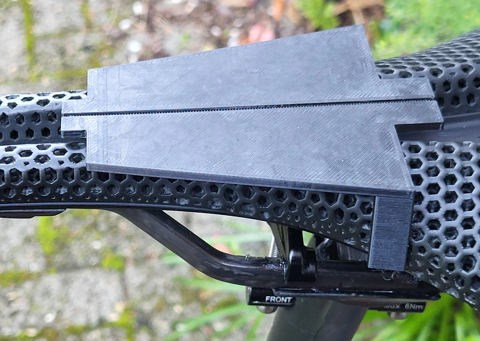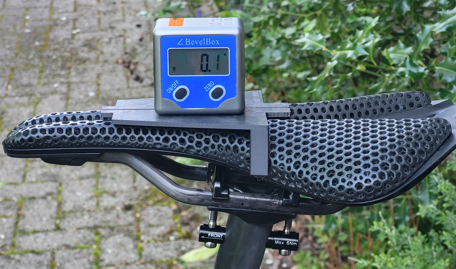 Với dụng cụ đo đơn giản này, các bạn có thể xác định chính xác "đường tham chiếu cơ sinh học" tại độ rộng 75mm trên yên xe đạp (thường dùng cho xe đạp đua, Gravel bike, MTB). Một số loại yên (như mẫu yên in 3D thương mại trong hình) đã có sẵn vạch đánh dấu này từ nhà sản xuất. Hơn nữa, dụng cụ này giúp đo độ nghiêng của yên xe một cách chuẩn xác, ngay cả khi yên có phần mũi dốc mạnh hoặc đuôi cao mà các loại thước thủy thông thường không đo được. Ngoài ra, mình có thêm một đường kẻ ở giữa để giúp các bạn kiểm tra độ thẳng của yên xe dễ dàng hơn. Đây là bản thiết kế đầu tiên của mình, mình sẽ tiếp tục cải thiện và thử nghiệm trên nhiều loại yên khác trong thời gian tới. Nếu kích thước 75mm không đạt chuẩn xác hoàn hảo trên máy in của các bạn, hãy điều chỉnh hệ số bù trừ (scaling) trong phần mềm Slicer nhé. Loại nhựa nào cũng được, mình đã dùng nhựa PETG còn dư, độ dày lớp in 0.2mm.
