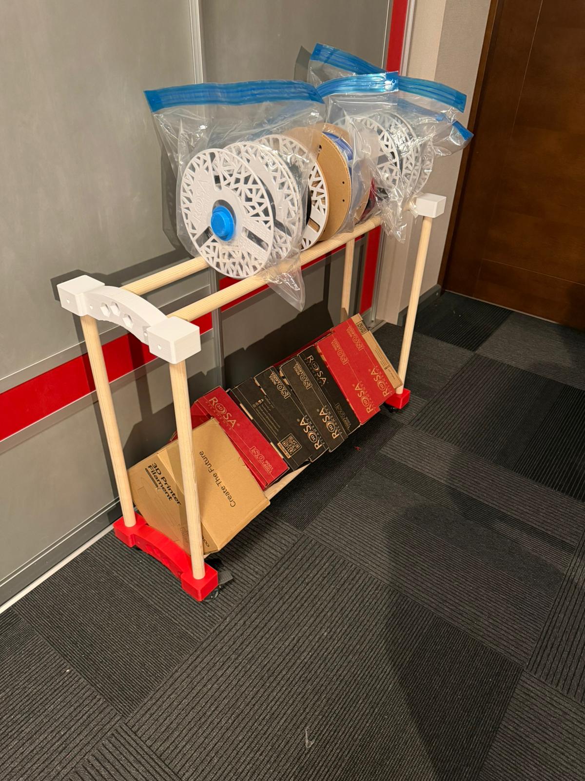 Mẫu giá đỡ cuộn nhựa dạng module cực kỳ chắc chắn, linh hoạt với hai tùy chọn lắp ráp: sử dụng heat-set insert hoặc chèn đai ốc M4. Thiết kế cho phép tùy chỉnh chiều dài bằng thanh gỗ và vận hành mượt mà nhờ hệ thống bánh xe.