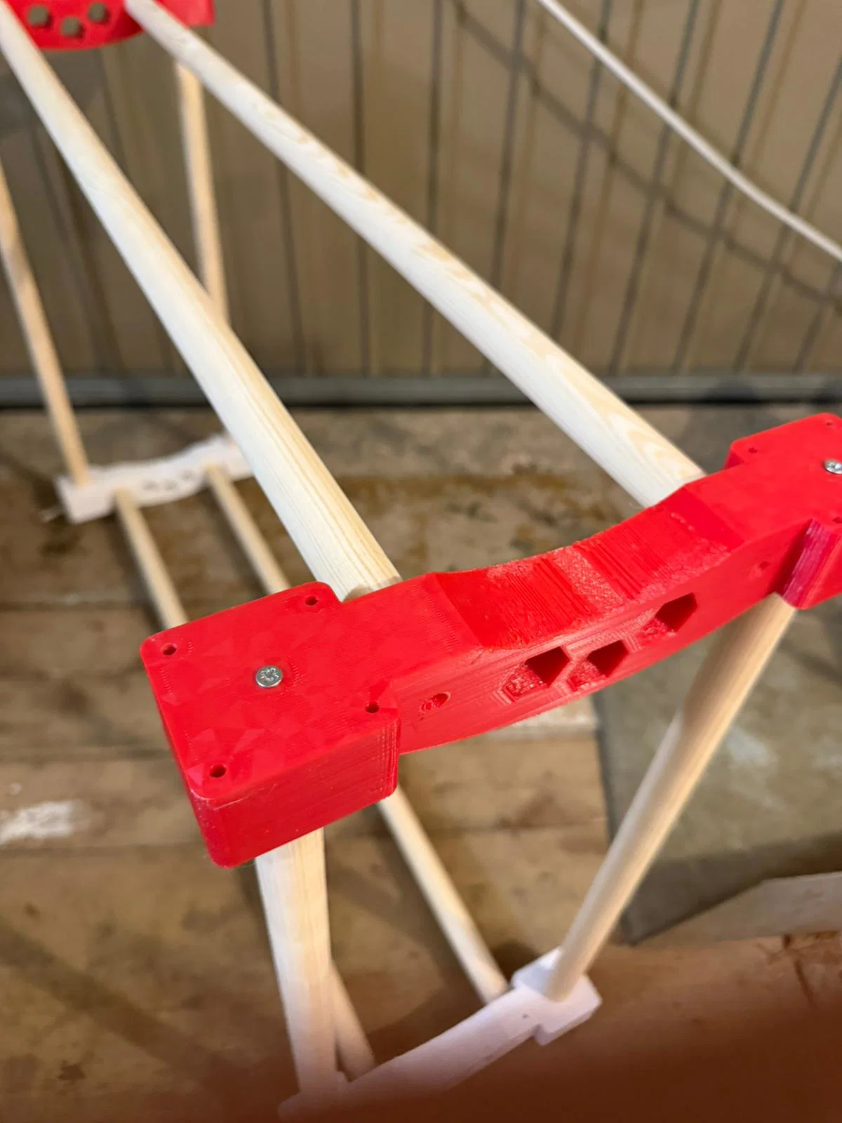 - Hãy xem hình ảnh để biết cách lắp ráp chính xác. Trong cấu hình hiện tại, mình chỉ lắp hai lớp (do hết nhựa nên mình bỏ qua các phần ở giữa), nhưng thiết kế đầy đủ có thể hỗ trợ thêm nhiều phần nữa. Các thanh gỗ chỉ cần đút vào lỗ là xong, mọi thứ sẽ khớp với nhau rất gọn gàng.