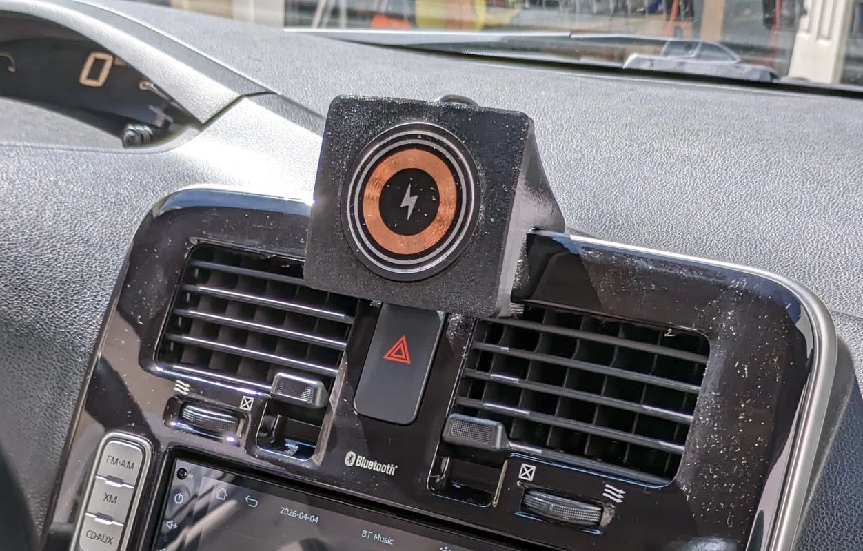 Mình thiết kế món này để lắp vừa mấy cái đế sạc Magsafe clone của mình, và nó cũng lắp vừa cả đồ chính hãng của Apple luôn. Thiết kế này dạng kẹp vào phần viền trên của cụm điều khiển trung tâm, rồi móc vào các khe gió máy lạnh. Nó có làm hạn chế việc điều chỉnh hướng gió một chút, nhưng bù lại điện thoại của bạn sẽ được làm mát trực tiếp khi sạc! Mình khuyên mọi người nên dùng nhựa PETG hoặc ASA/ABS vì nó nằm ngay trên bảng điều khiển rất nóng, nhựa PLA chắc chắn sẽ bị chảy kể cả khi thời tiết chỉ hơi nóng thôi. PETG của mình đã trụ được một mùa hè ở California rồi, tuy nhiên nó không còn khớp chặt như lúc mới in nữa.