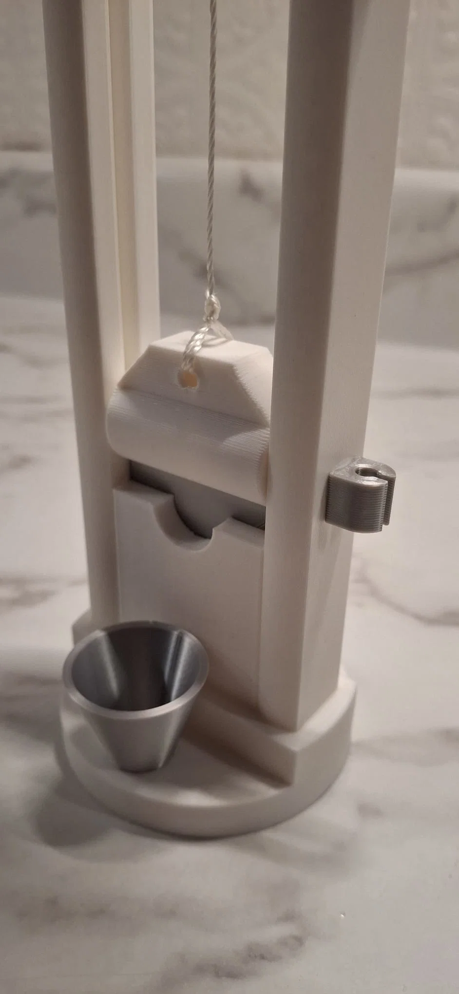 Món đồ chơi để bàn "vui nhộn" và đầy tính ứng dụng. Mẫu này không cần support, in cực dễ, không cần phần cứng phức tạp, chỉ cần thêm một đoạn dây là xong. Một thiết kế thú vị cho bộ sưu tập mô hình thời trung cổ của bạn.