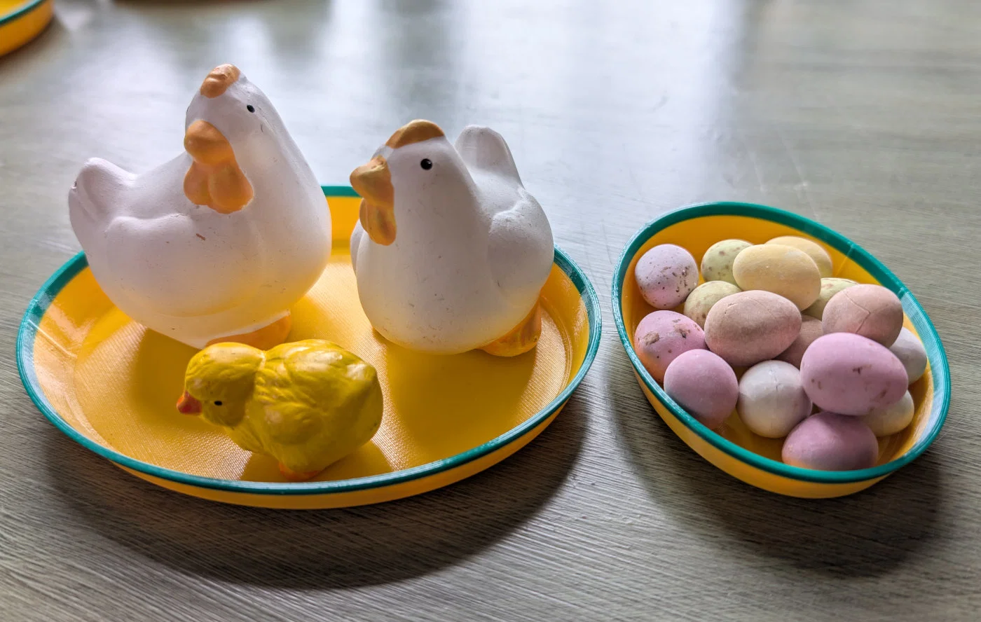Trong hình ảnh minh họa, tôi dùng khay để đựng đồ trang trí Lễ Phục sinh (in hai màu, xem hướng dẫn in bên dưới), nhưng bạn hoàn toàn có thể dùng chúng để đựng các linh kiện nhỏ như ốc vít, hạt cườm, v.v.
