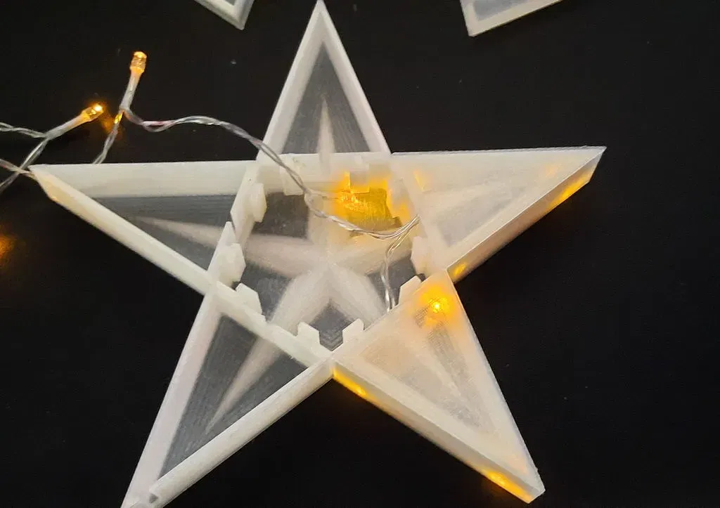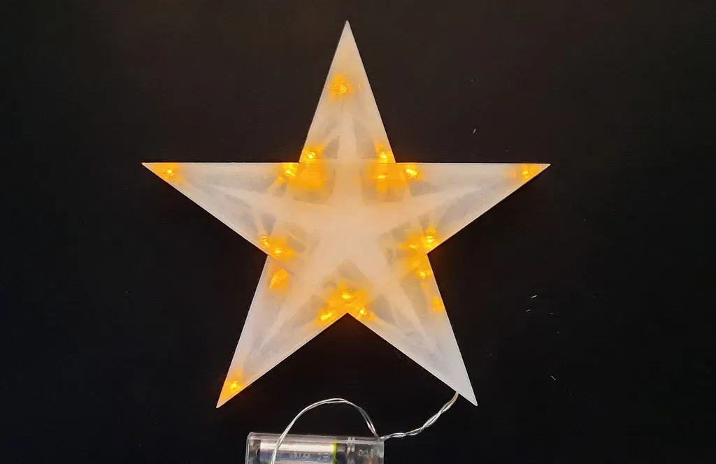 Ban đầu, tôi đã lên kế hoạch cho một chiếc chóp cây Giáng sinh phát sáng đơn giản mà một người bạn đã nhờ tôi làm. Tôi tìm thấy một bộ đèn pin chạy bằng pin với giá 1.59 bảng, và đã nghĩ ra một thiết kế đơn giản gồm 2 mảnh. Nhưng trước khi tôi kịp khởi động máy in, anh ấy đã mua một ngôi sao làm sẵn với giá 2 bảng ở cửa hàng giảm giá địa phương.