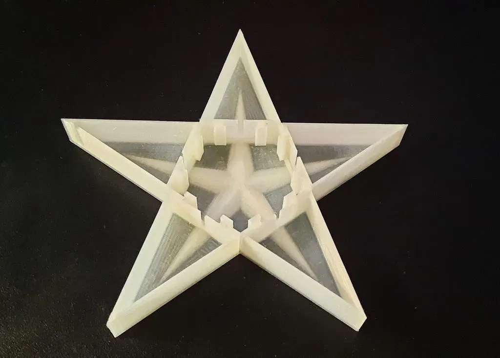 Các phần riêng lẻ khá mỏng manh, và bạn cần cẩn thận làm sạch các mối nối kỹ lưỡng trước khi lắp ráp. Tôi đã gặp vấn đề với "chân voi" trên máy in của mình (rõ ràng là tôi cần dành thời gian để điều chỉnh lại). Nhưng, một khi được làm sạch và ghép lại, nó tạo ra một ngôi sao khá chắc chắn.