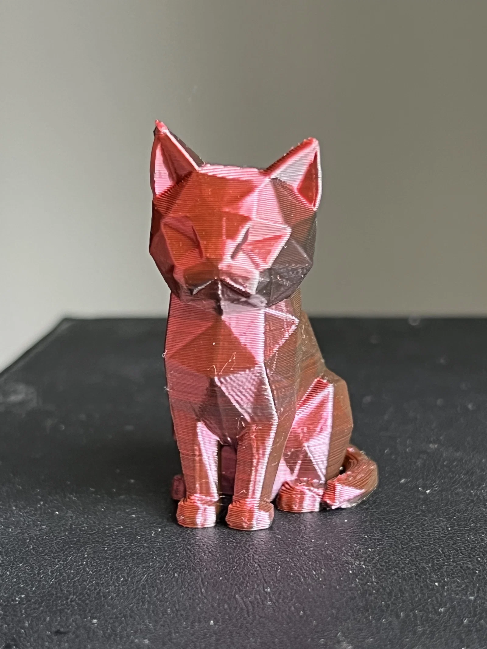 Mô hình 3D mới được tạo bằng AI, một chú Mèo Ngồi Lowpoly dễ thương. Mình in các mẫu này trên chiếc máy in cũng hơi cũ rồi. Mình luôn cố gắng tìm ra tỉ lệ chất lượng/thời gian in tốt nhất cho mỗi sản phẩm. Vì mình in ở kích thước khá nhỏ, cộng thêm việc chụp cận cảnh (macro) nên ảnh sẽ làm nổi bật mọi lỗi nhỏ trên bề mặt. Ảnh chỉ mang tính chất minh họa để mọi người thấy là mô hình này hoàn toàn in được bình thường nhé. Đừng quên nhấn LIKE, tải về và đăng ảnh sản phẩm của bạn sau khi in xong nha, cảm ơn mọi người nhiều! Được tạo bởi tính năng Image-to-3D từ MakerWorld (https://makerworld.com/makerlab/imageTo3d)