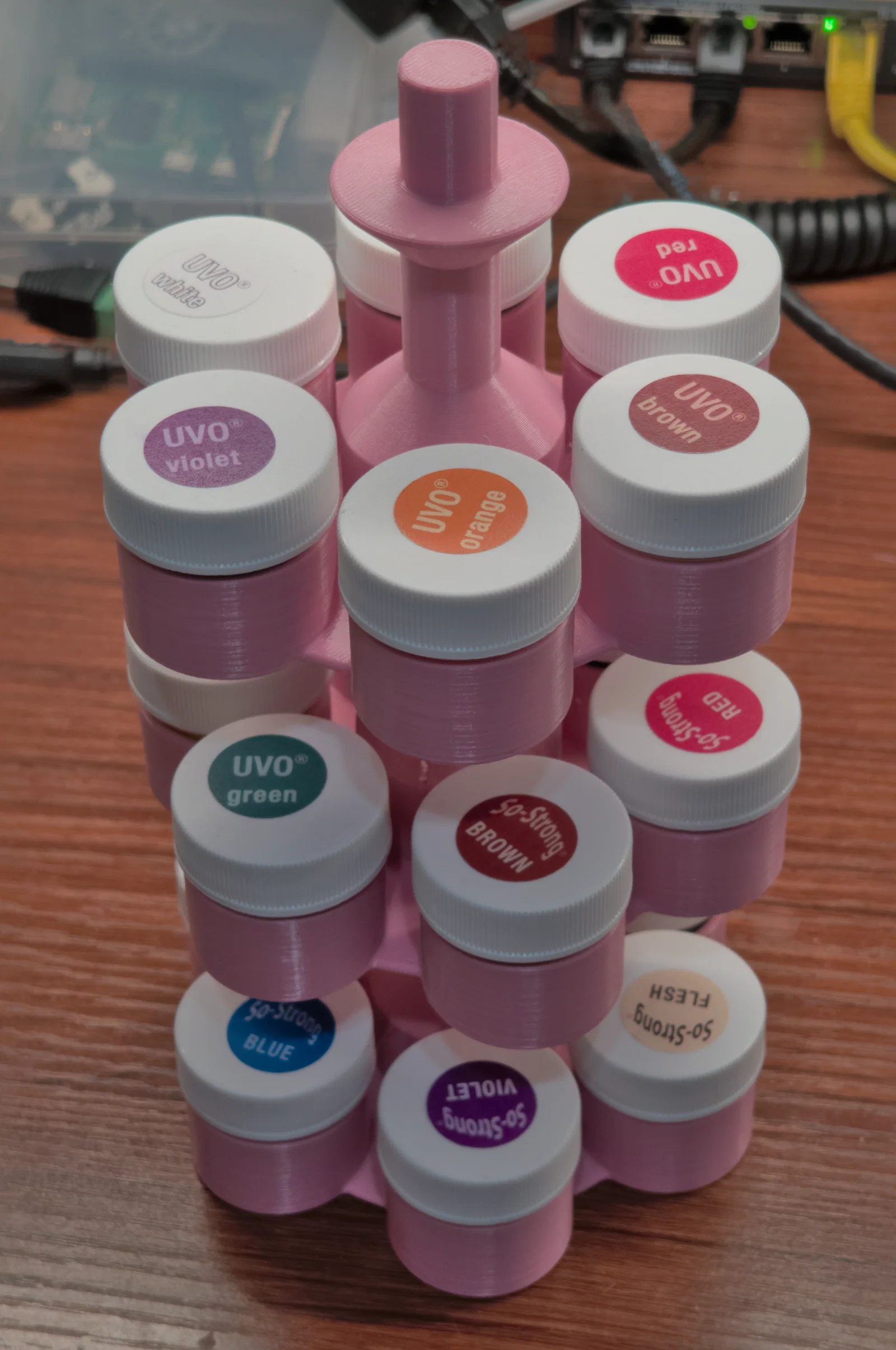 Bạn đang cảm thấy bàn làm việc của mình ngập tràn những lọ màu nhuộm, pigment hay resin mà không biết sắp xếp sao cho gọn gàng? Mẫu giá đỡ in 3D này chính là giải pháp hoàn hảo giúp bạn quản lý không gian làm việc một cách khoa học. Với thiết kế thông minh cho phép xếp chồng lên nhau, bạn có thể tận dụng tối đa không gian theo chiều dọc, giữ cho mọi thứ luôn trong tầm mắt và dễ dàng lấy sử dụng ngay khi cần.