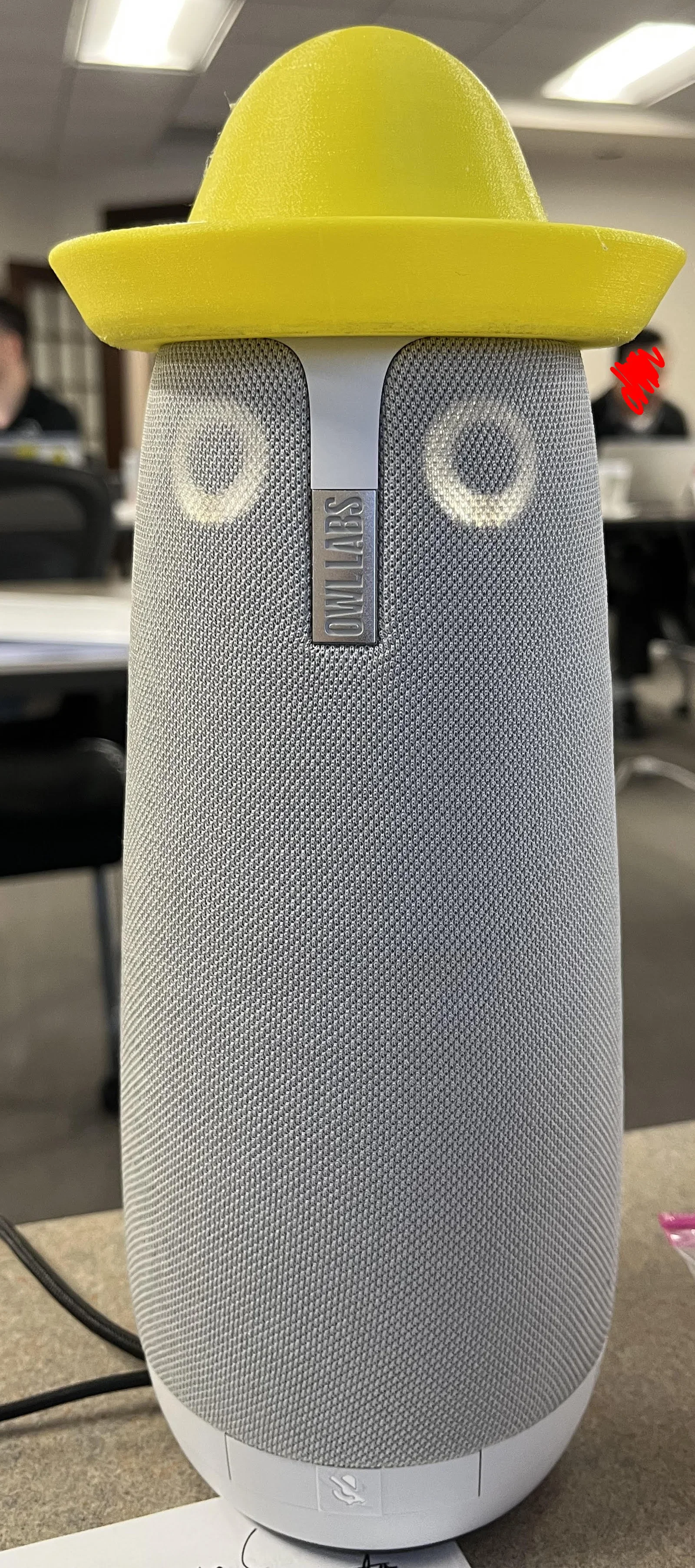 Tụi mình vừa tham gia một buổi tập huấn mà ở đó giảng viên dùng Meeting Owl để kết nối với các bạn học viên ở xa. Trong những lúc giải lao, camera vẫn hoạt động và tự động xoay theo người nói. Cái "mũ" này giúp đảm bảo sự riêng tư bằng cách che ống kính mà không hề chạm vào camera, nhờ đó ngăn chặn được việc camera tự động theo dõi.