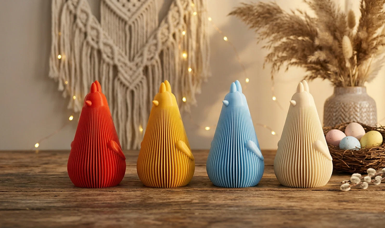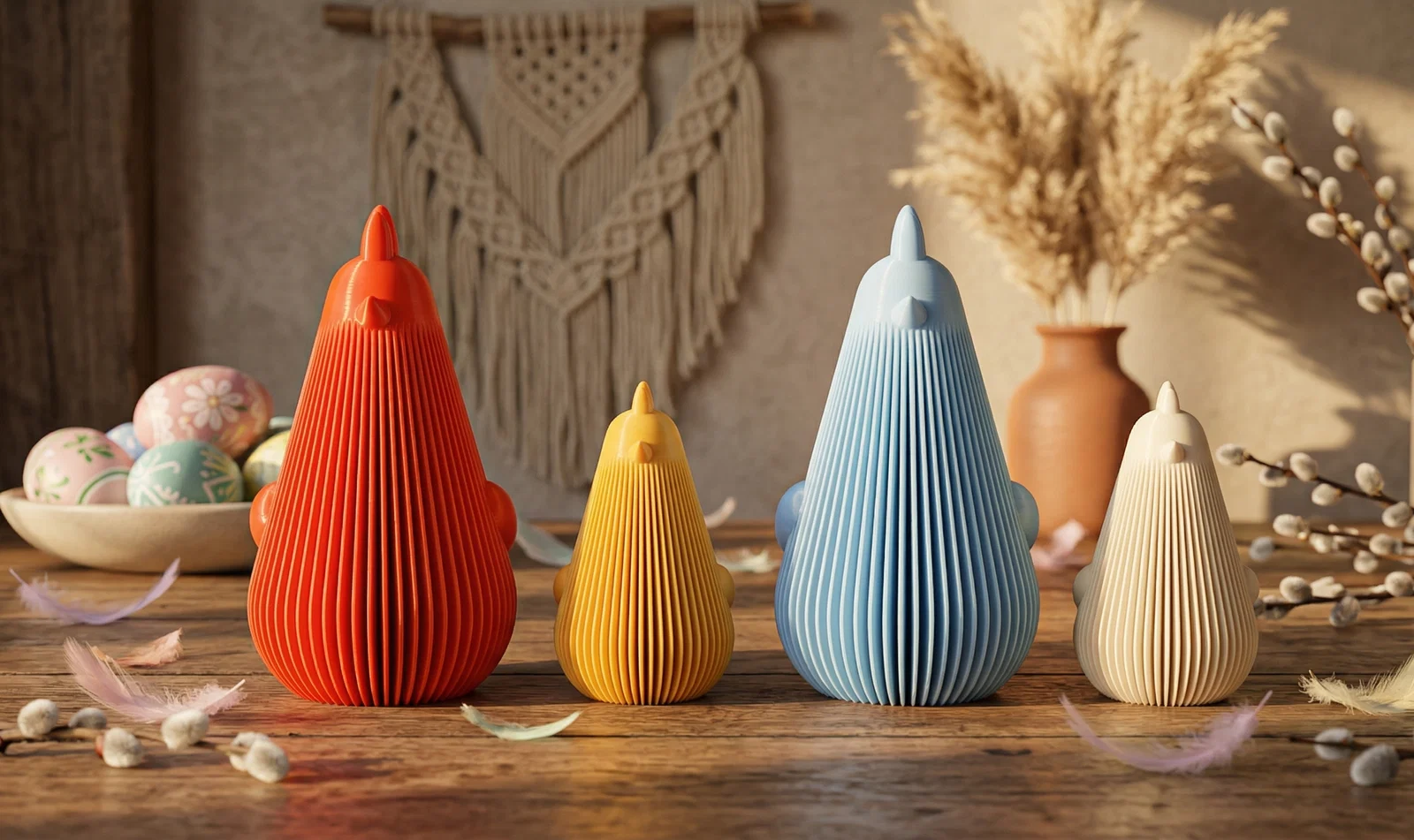 Trang trí Easter, Easter hiện đại, trang trí xuân boho, tượng gà tối giản, gà trống vân sọc, đồ trang trí in 3D, tượng gà mái xếp ly, tâm điểm bàn tiệc, Easter pastel, phụ kiện trang trí rustic, mùa xuân farmhouse hiện đại, trang trí bàn gỗ, vật phẩm lễ hội, quà tặng mùa xuân, gà vàng, gà trống đỏ, trang trí xanh pastel, điểm nhấn nhà cửa màu kem