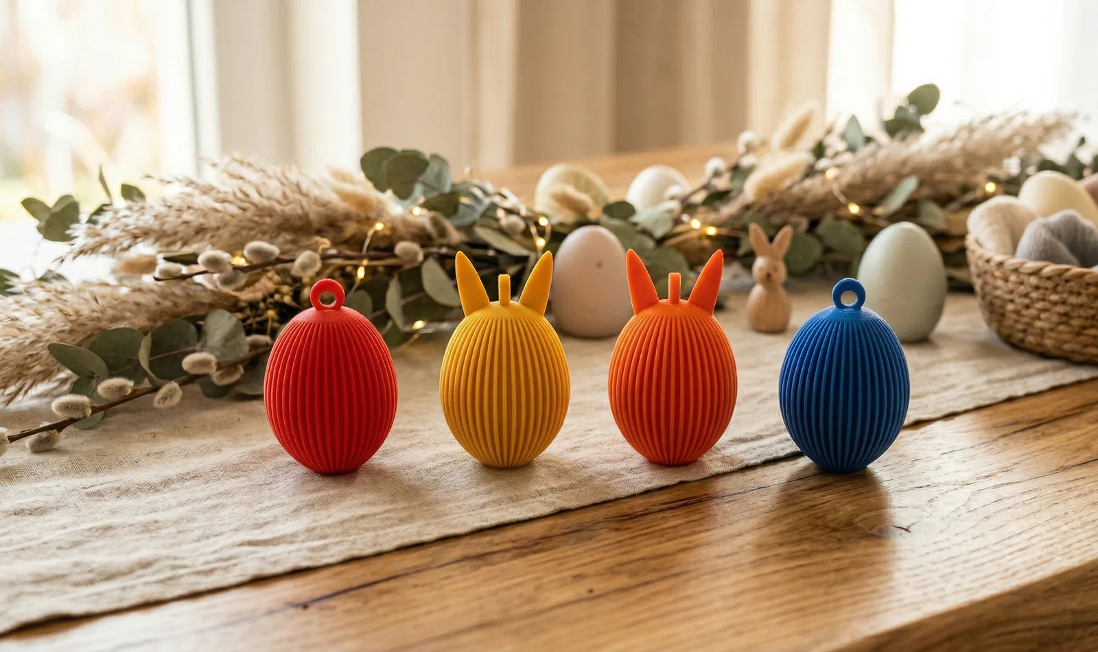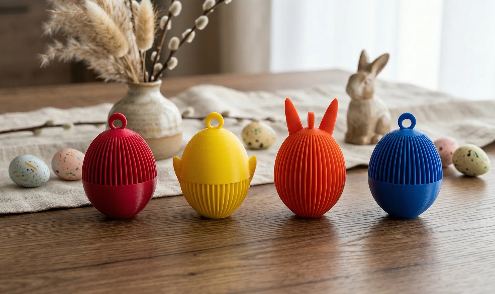 Mang hơi thở hiện đại vào lễ Phục sinh với bộ mô hình in 3D hình trứng Phục sinh phong cách hình học độc đáo. Sản phẩm bao gồm các mẫu trứng tối giản, trứng tai thỏ và trứng cánh nhỏ với kết cấu vân nổi bắt mắt, hoàn hảo để treo hoặc làm điểm nhấn trang trí bàn tiệc theo phong cách boho tinh tế.
