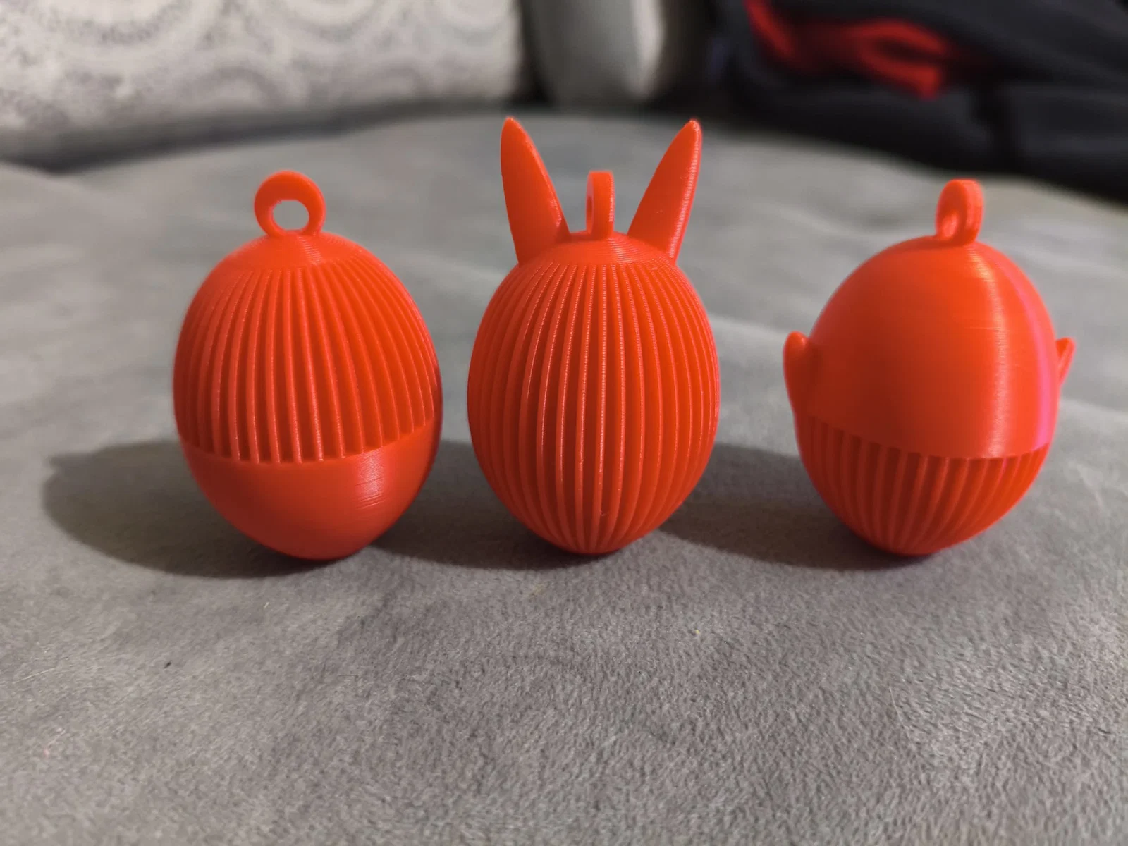 Thiết kế hình học độc đáo & kết cấu vân nổi Đây không phải là những quả trứng Phục sinh thông thường. Được chế tác chính xác bằng công nghệ in 3D hiện đại, mỗi quả trứng đều sở hữu các đường vân nổi (ribbed texture) bắt mắt, tạo nên hiệu ứng đổ bóng và ánh sáng cực đẹp. Bộ sưu tập bao gồm nhiều mẫu thiết kế vui nhộn: