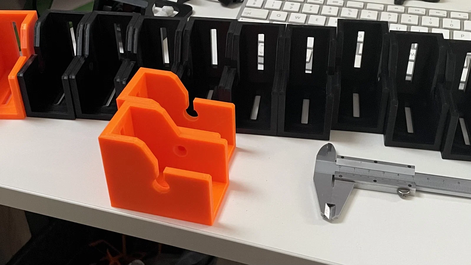 • Chất liệu: Mình khuyên bạn nên dùng PETG, ASA hoặc ABS. PLA có thể sẽ hơi giòn trong môi trường công trường hoặc bị biến dạng nếu để trong xe hơi vào những ngày nắng nóng.