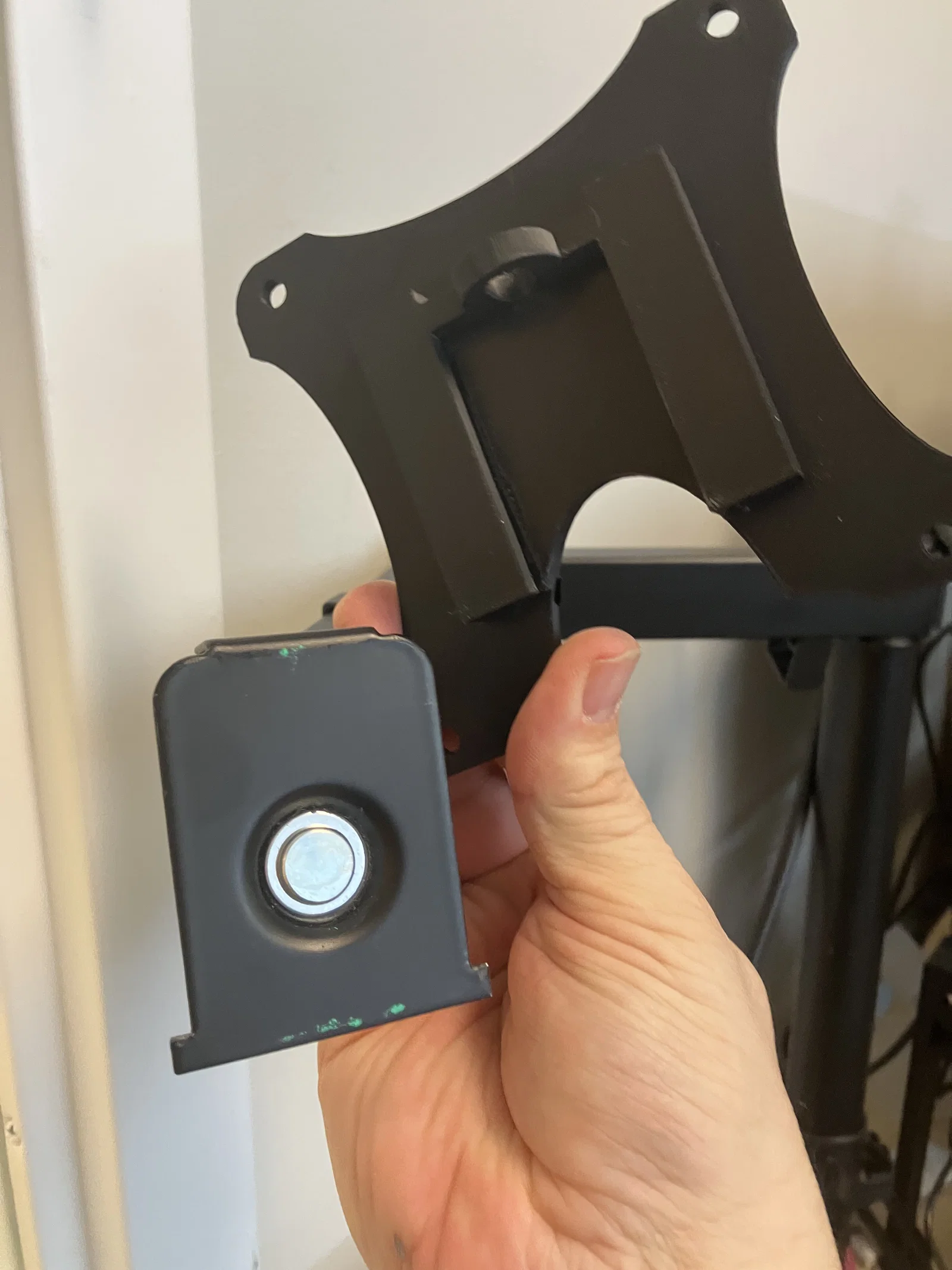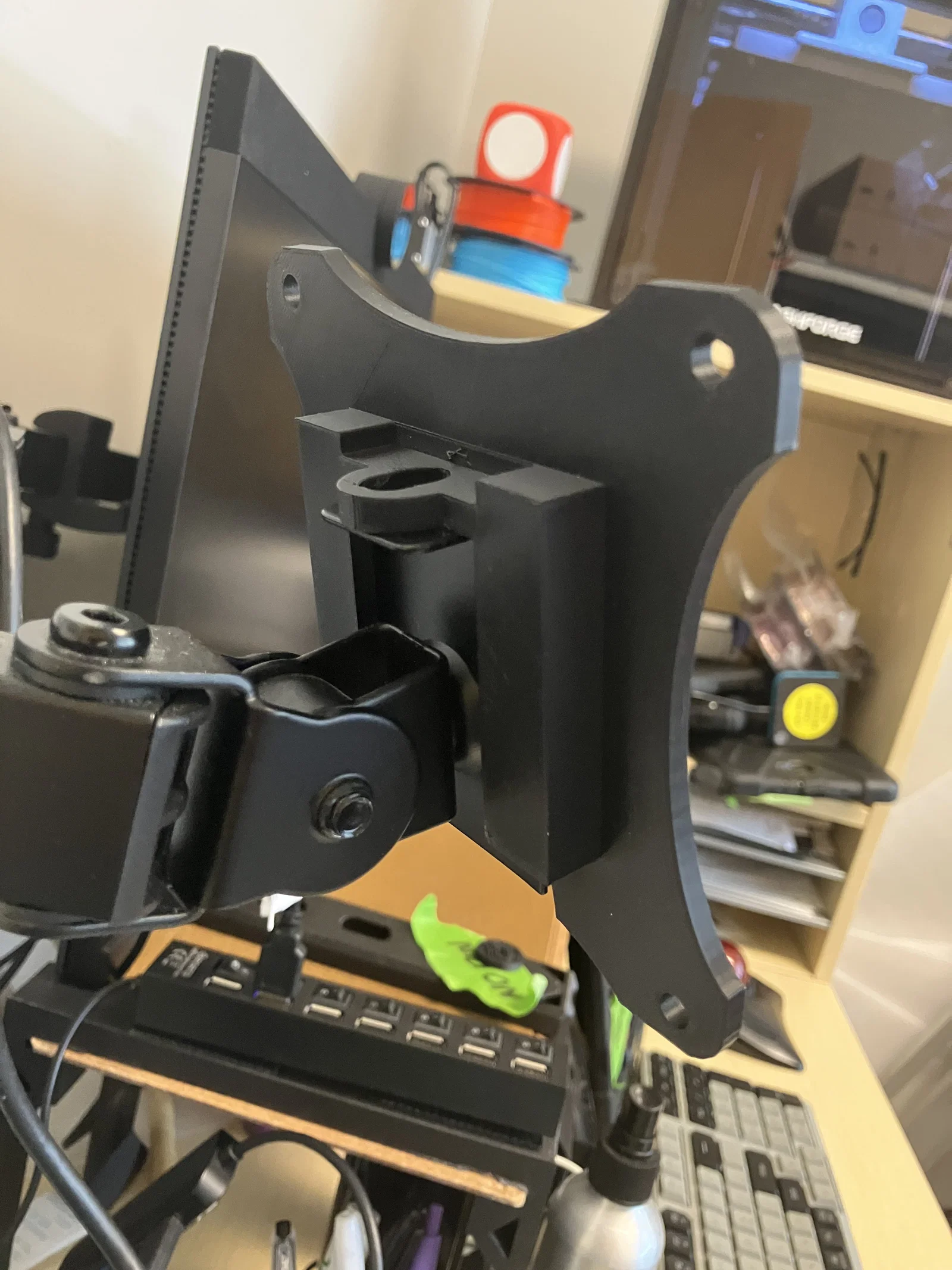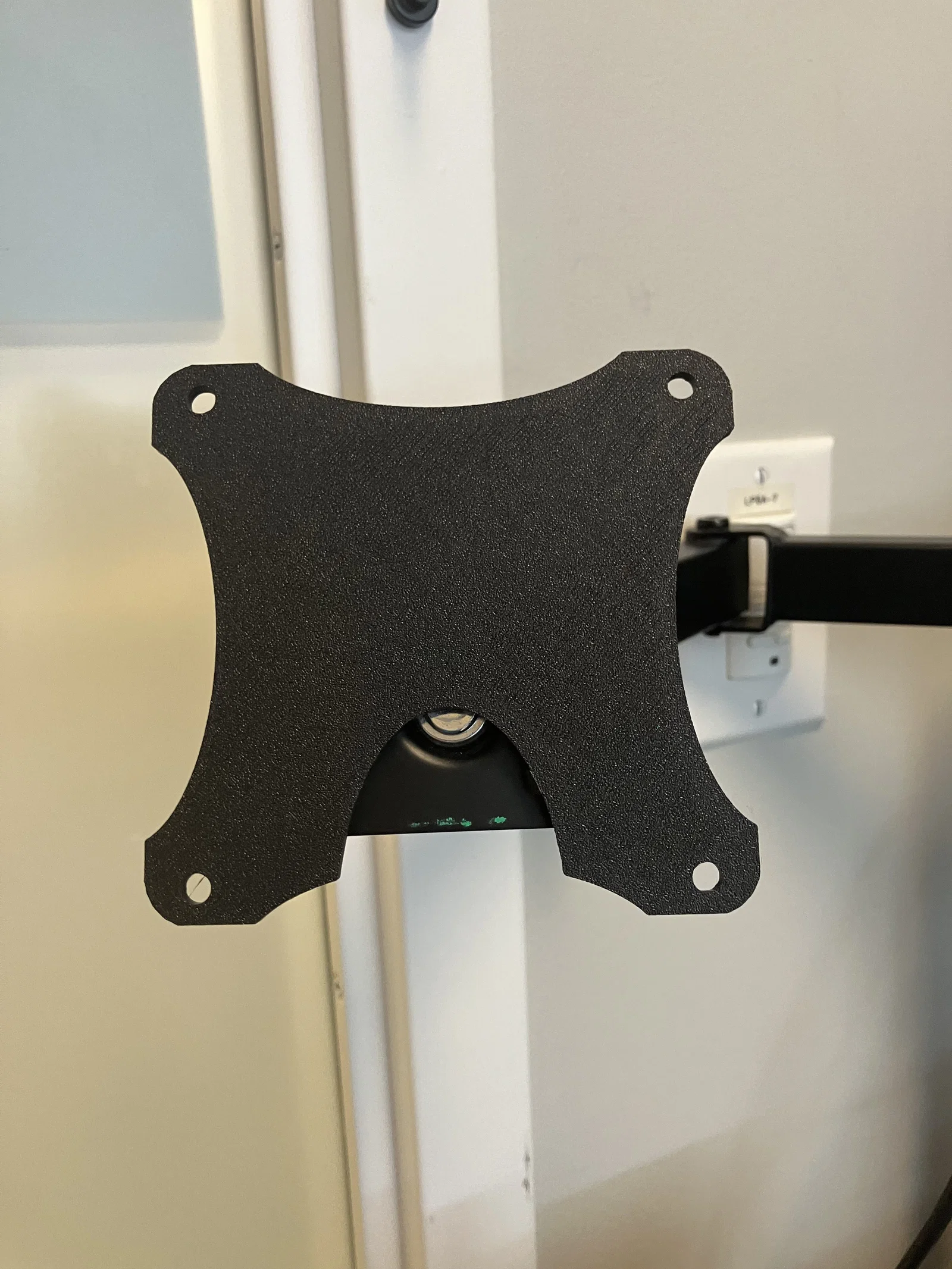 Giải pháp thay thế miếng bát gắn VESA bị mất cho tay đỡ màn hình. Thiết kế này giúp bạn tái sử dụng tay đỡ cũ một cách dễ dàng. Hãy in bằng nhựa chịu lực tốt và tự cân nhắc trọng lượng màn hình khi sử dụng.