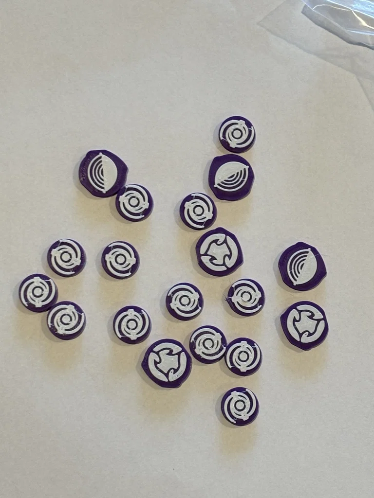 Mẫu token hiện diện 2 màu độc đáo dành riêng cho linh hồn Wandering Voice Keens Delirium trong Spirit Island. Thiết kế tối ưu để in chi tiết sắc nét, đi kèm hướng dẫn thiết lập in ấn để đạt chất lượng tốt nhất.