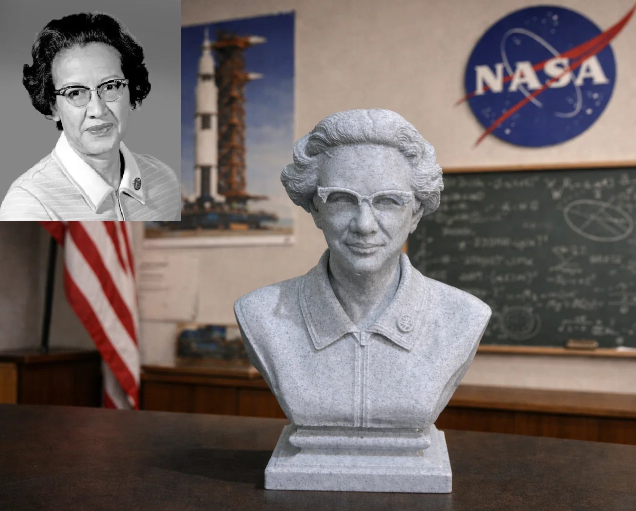 Mô hình tượng bán thân của nữ toán học gia tài ba Creola Katherine Coleman Johnson. Thiết kế chi tiết, tối ưu cho in 3D, tôn vinh di sản của nhân vật huyền thoại tại NASA.