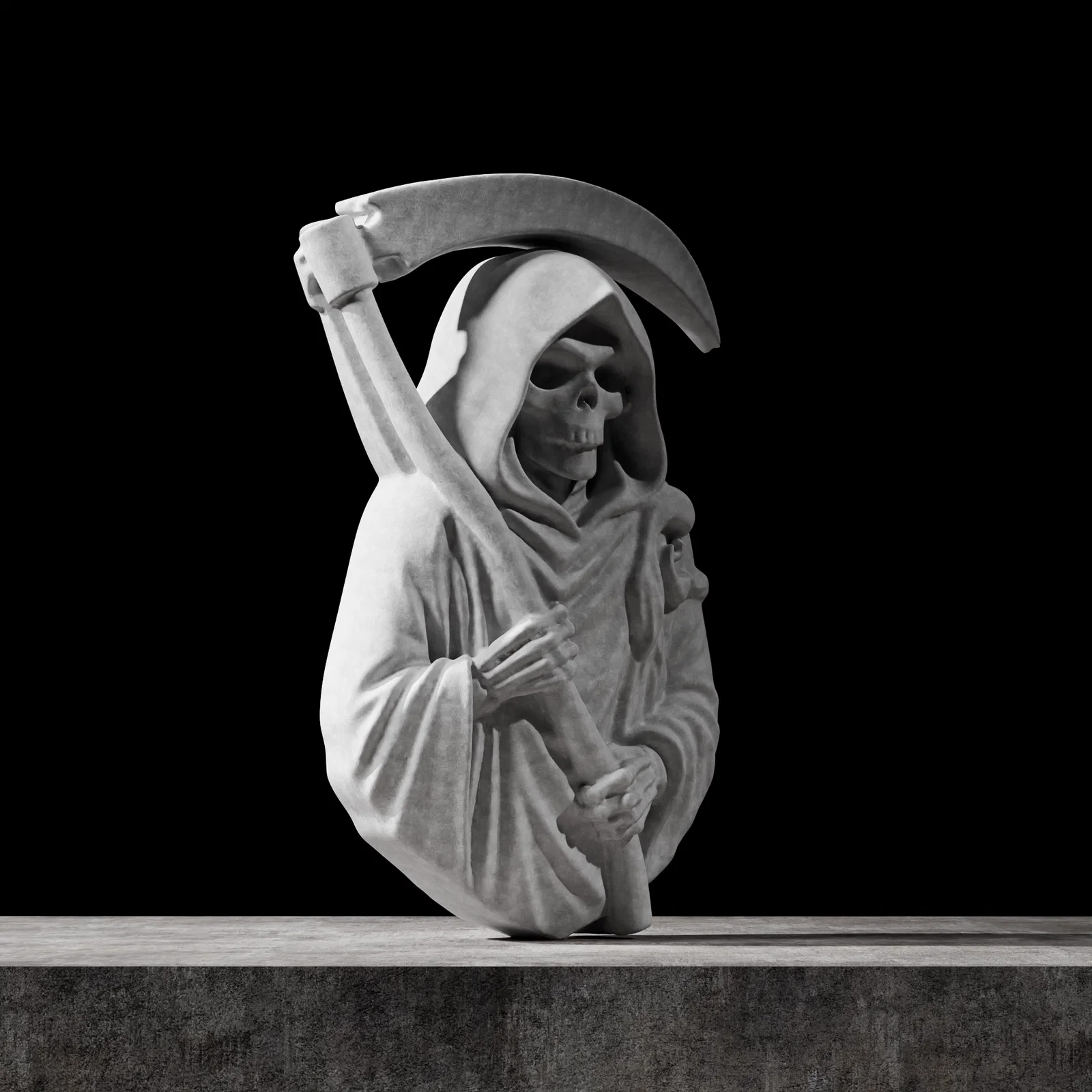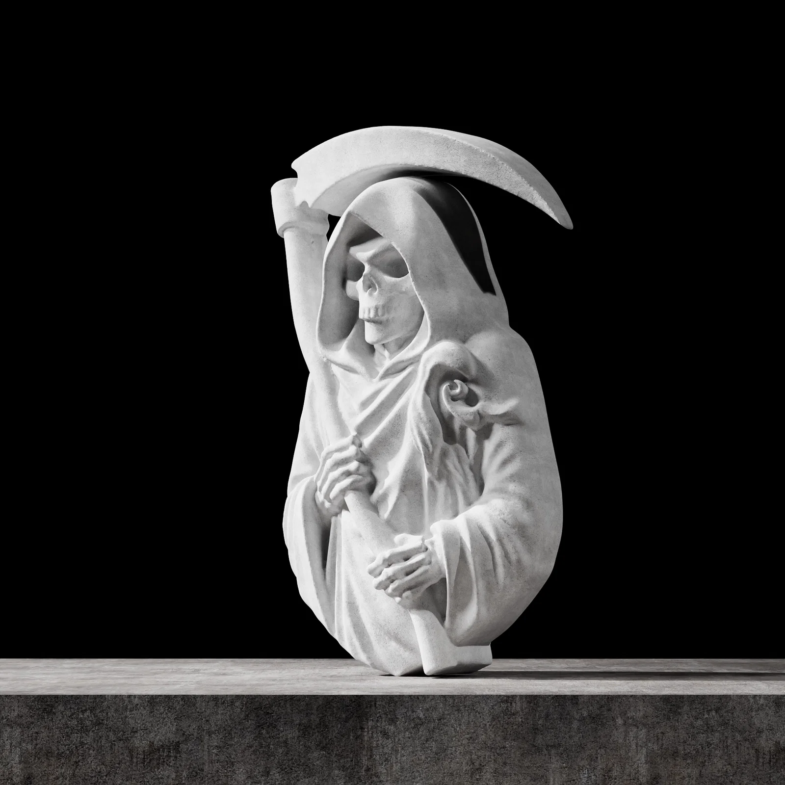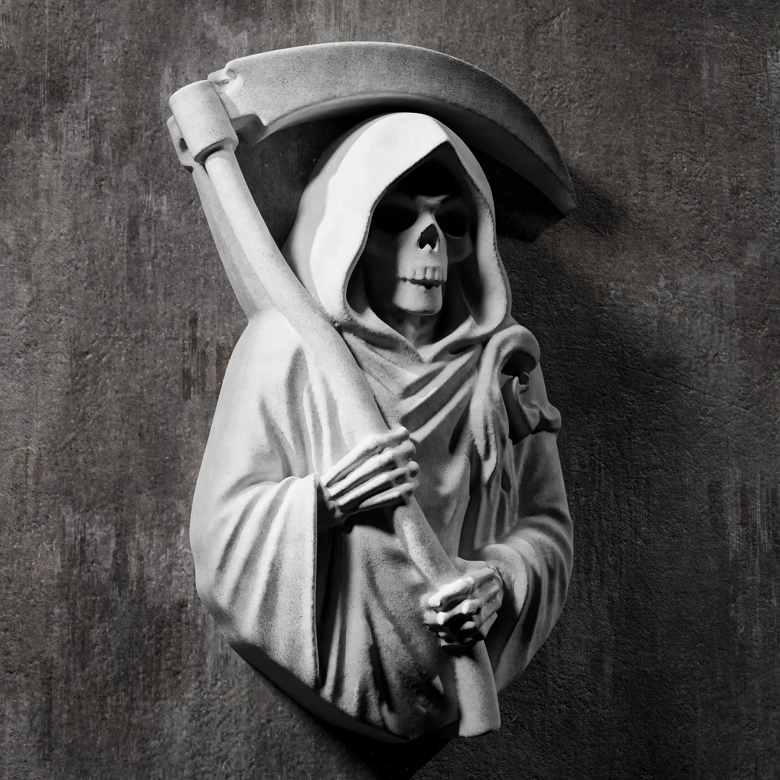 Tượng bán thân Thần Chết được điêu khắc tỉ mỉ theo phong cách phù điêu, rất lý tưởng để treo tường hoặc làm các tấm trang trí. Bố cục tập trung vào phần thân trên, tạo hiệu ứng thị giác mạnh mẽ ngay cả khi in ở kích thước nhỏ.