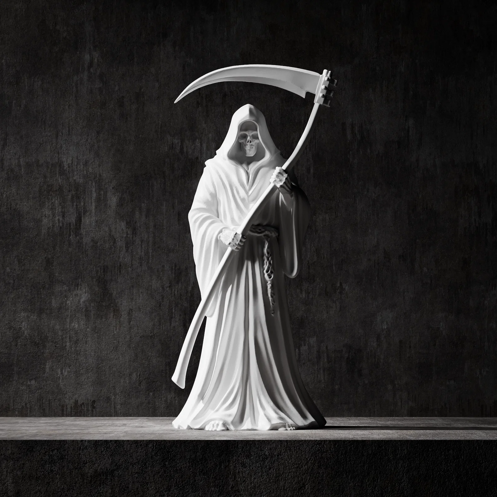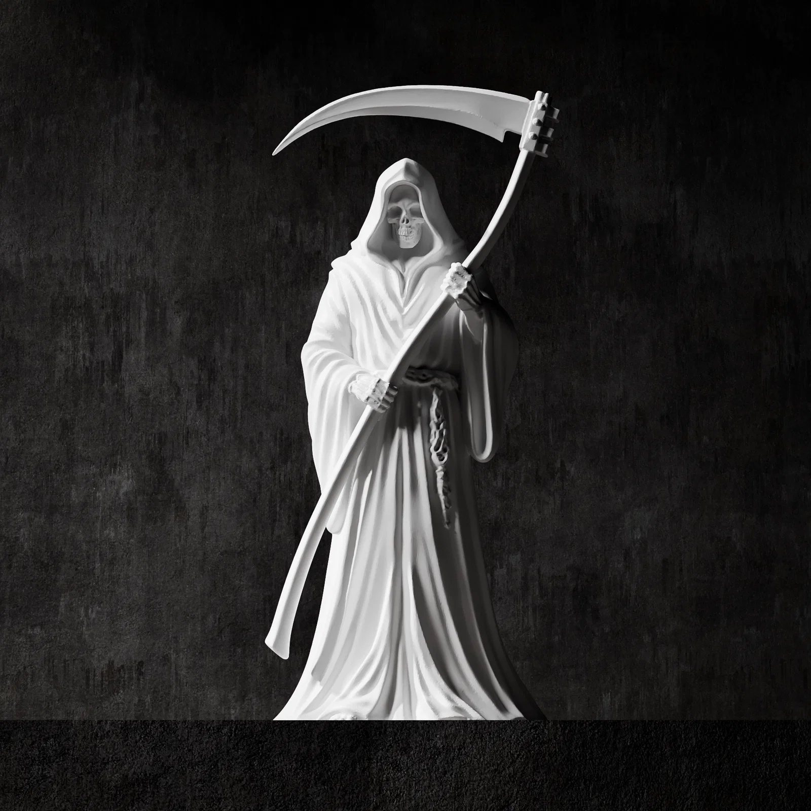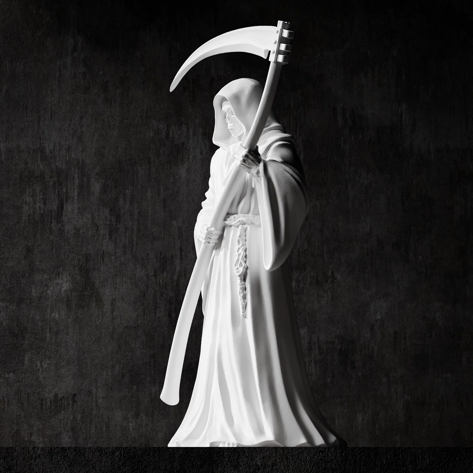 Mẫu tượng Thần Chết Grim Reaper phong cách cổ điển với khuôn mặt đầu lâu chi tiết và tư thế cầm lưỡi hái đầy kịch tính. Sản phẩm tối ưu cho in 3D và CNC, hoàn hảo để trang trí hoặc đúc khuôn nghệ thuật.
