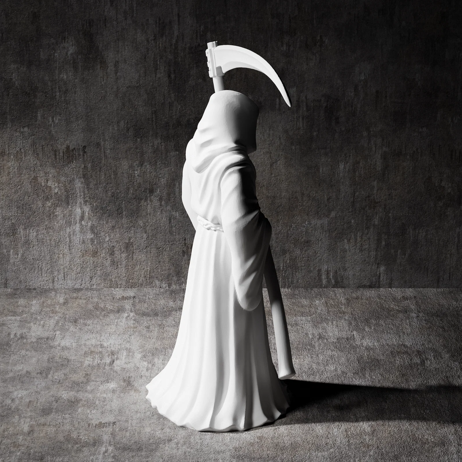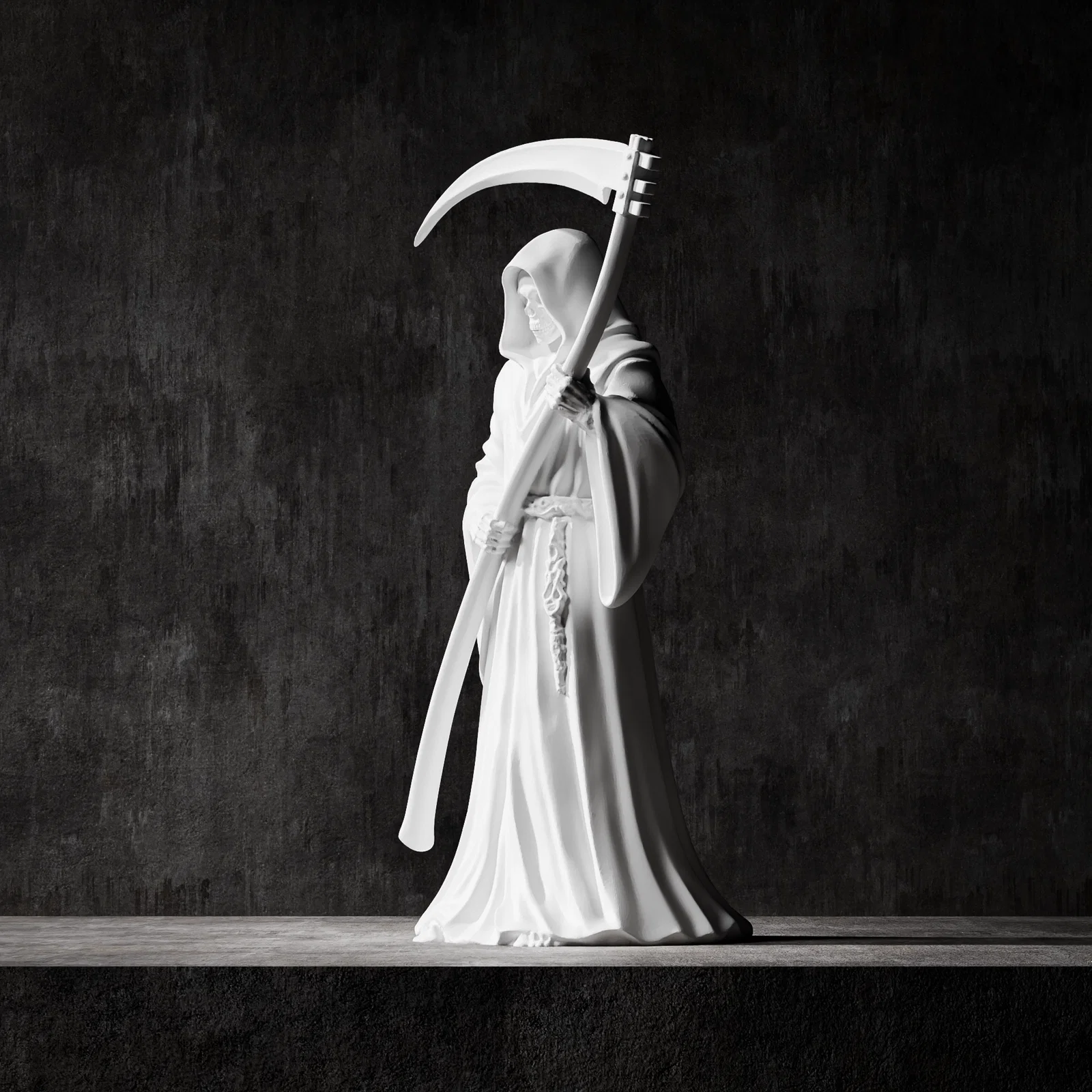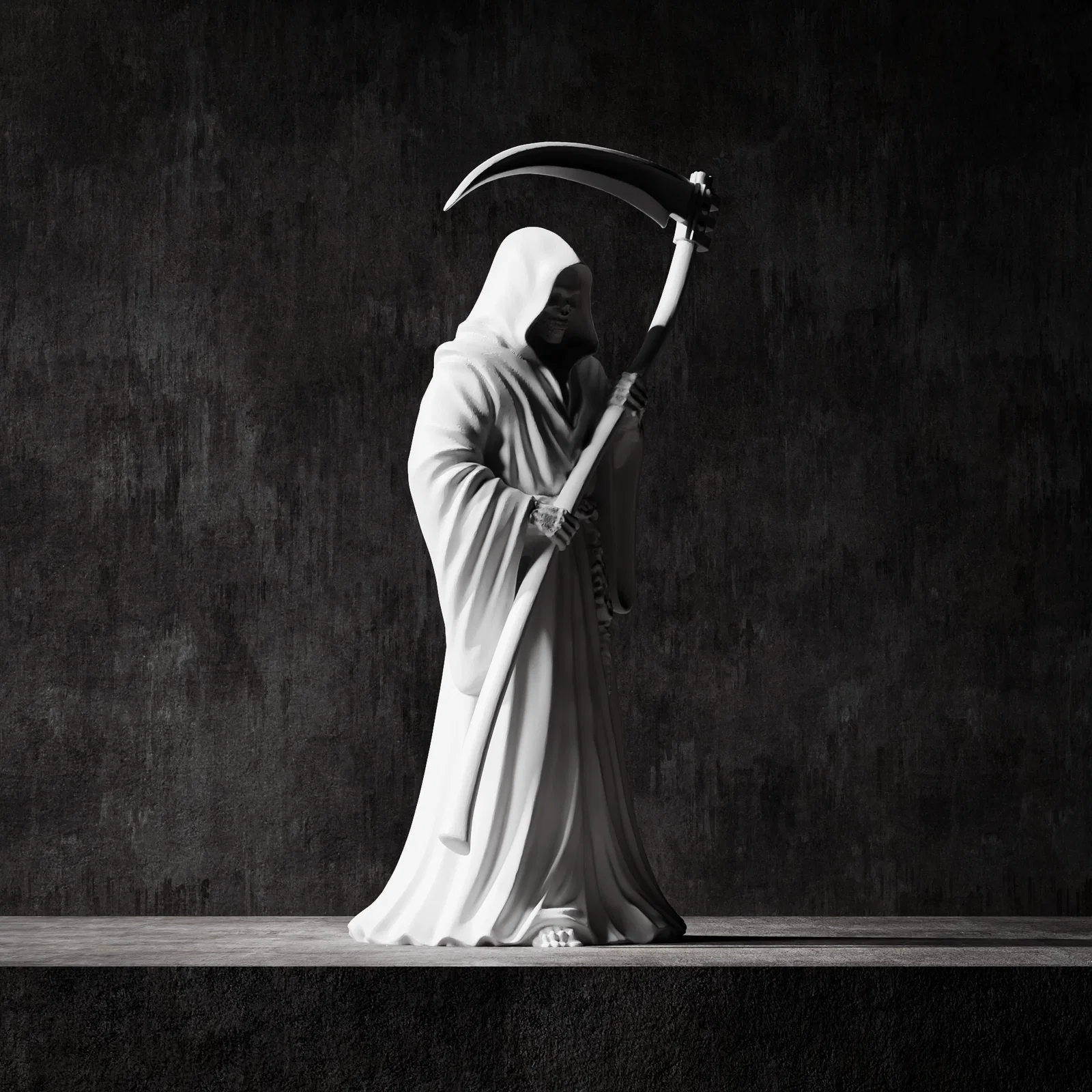 Mẫu tượng Thần Chết Grim Reaper phong cách cổ điển với khuôn mặt đầu lâu chi tiết và tư thế cầm lưỡi hái đầy kịch tính. Sản phẩm tối ưu cho in 3D và CNC, hoàn hảo để trang trí hoặc đúc khuôn nghệ thuật.