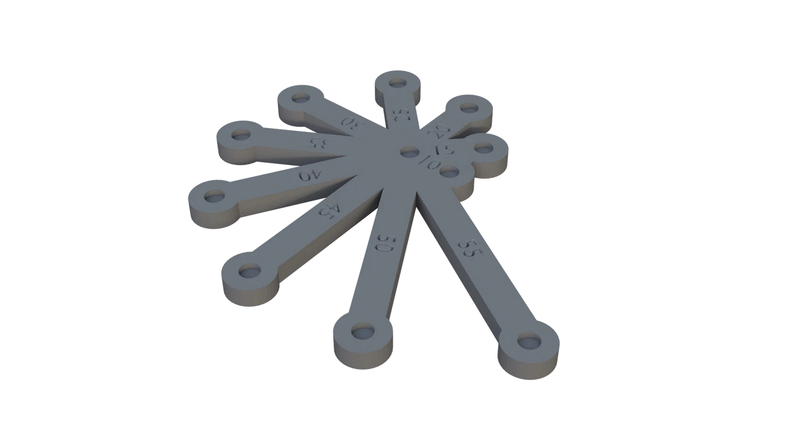 Đối với những ai thường xuyên làm đồ trang sức thủ công hoặc sửa chữa phụ kiện, việc xác định chính xác độ dài của các sợi dây chuyền luôn là một thách thức nhỏ nhưng tốn thời gian. Với mẫu in 3D này, bạn sẽ sở hữu một công cụ đo lường chuyên dụng cực kỳ tiện lợi, giúp bạn đo đạc nhanh chóng các đoạn dây từ 10 mm đến 55 mm một cách chuẩn xác nhất. Thiết kế của dụng cụ này mô phỏng hình nan quạt, giúp bạn dễ dàng so sánh và chọn lựa kích thước dây phù hợp cho các thiết kế của mình mà không cần dùng đến thước dây truyền thống hay thước kẹp phức tạp.