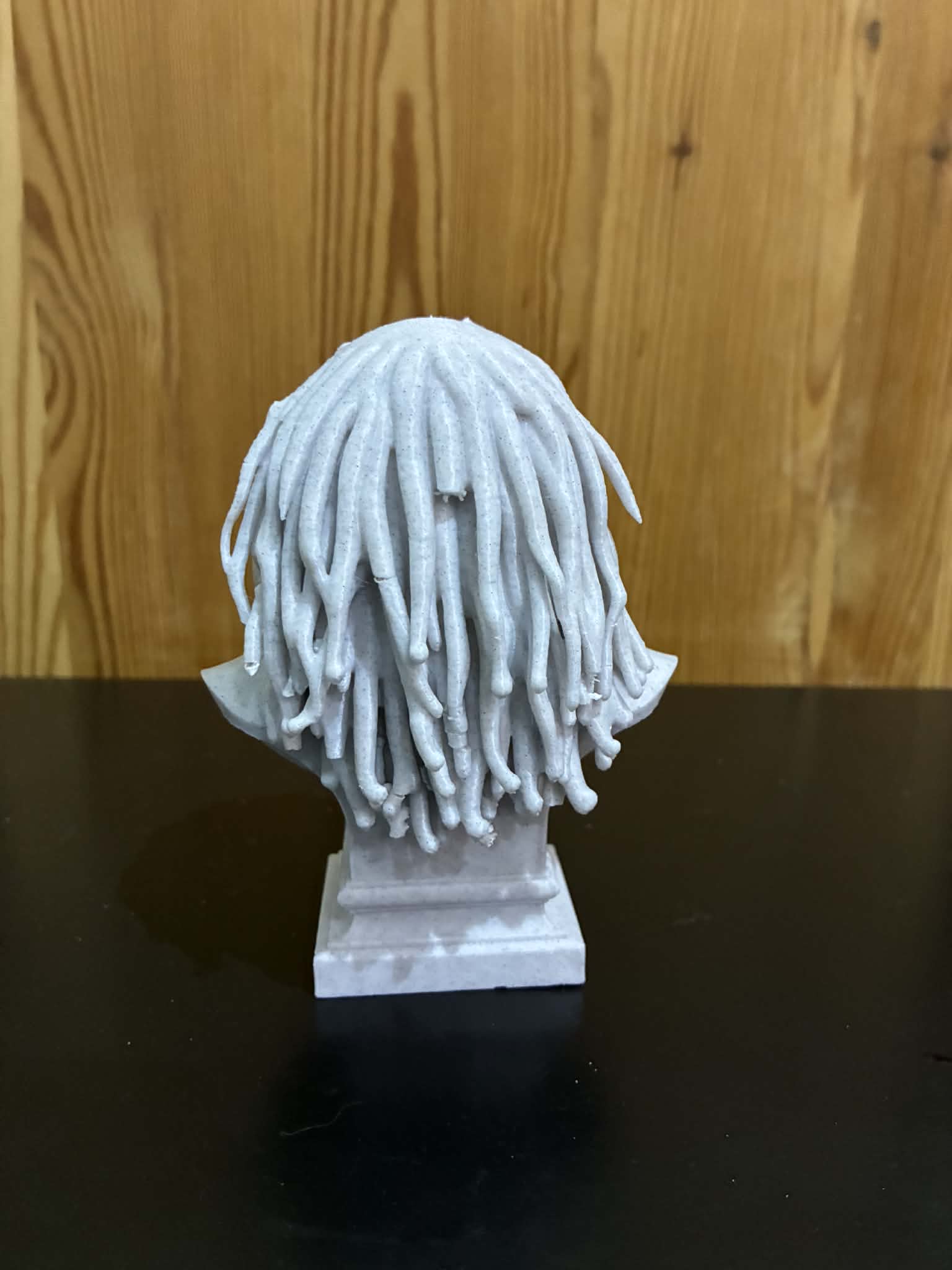 Cách tạo hình điêu khắc chú trọng vào các khối hình rõ nét và những đường nét được nhấn mạnh, giúp cho gương mặt trở nên nổi bật và rất phù hợp để in 3D. Phần tóc dreadlocks, yếu tố đặc trưng làm nên bản sắc của ông, được thiết kế thành các khối cấu trúc đơn giản hóa, giúp tăng cường độ chi tiết và cá tính cho mô hình. Các đường nét trên gương mặt, đặc biệt là mắt, mũi và miệng, vẫn giữ được sự bất đối xứng tự nhiên, đảm bảo sự giống thật mà không hề bị lý tưởng hóa.