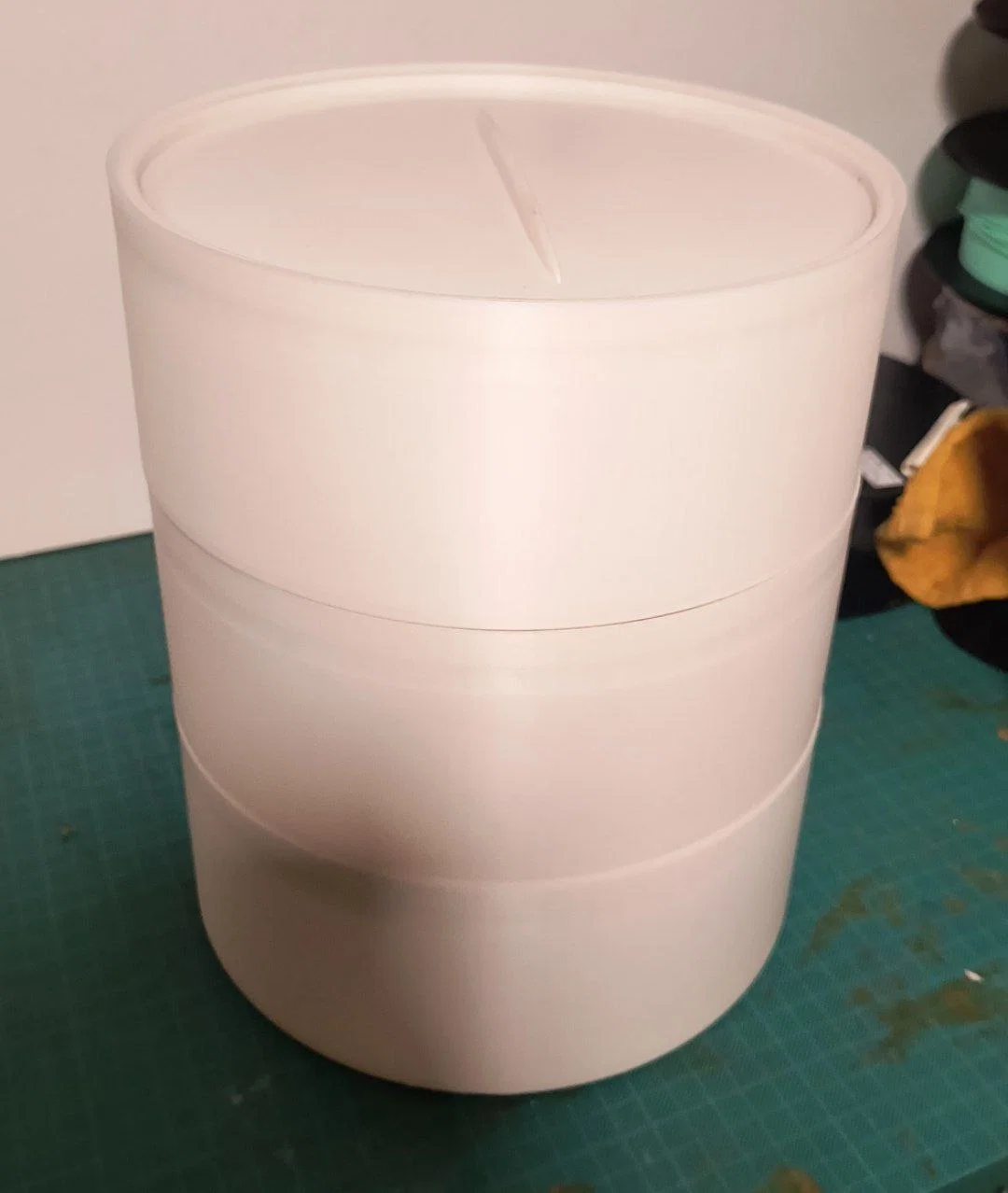 Bạn đang loay hoay vì các cuộn nhựa in 3D (filament) bám bụi hoặc bị ảnh hưởng bởi độ ẩm? Mẫu hộp tròn xếp chồng (Stackable round container) này chính là giải pháp hoàn hảo dành cho bạn. Với thiết kế thông minh, hộp không chỉ giúp bạn sắp xếp không gian gọn gàng bằng cách xếp chồng lên nhau, mà còn được tích hợp gioăng kín làm từ sợi TPU giúp bảo vệ cuộn nhựa của bạn một cách tốt nhất. Sản phẩm này cực kỳ tiện dụng cho những ai muốn giữ cho kho nhựa in 3D của mình luôn sạch sẽ và bền bỉ theo thời gian. Mẫu in này tương đối dễ thực hiện, thích hợp cho cả người mới bắt đầu và những người chơi 3D in ấn lâu năm. Hãy tận dụng ngay thiết kế này để nâng cấp không gian làm việc của bạn thêm chuyên nghiệp và khoa học hơn.