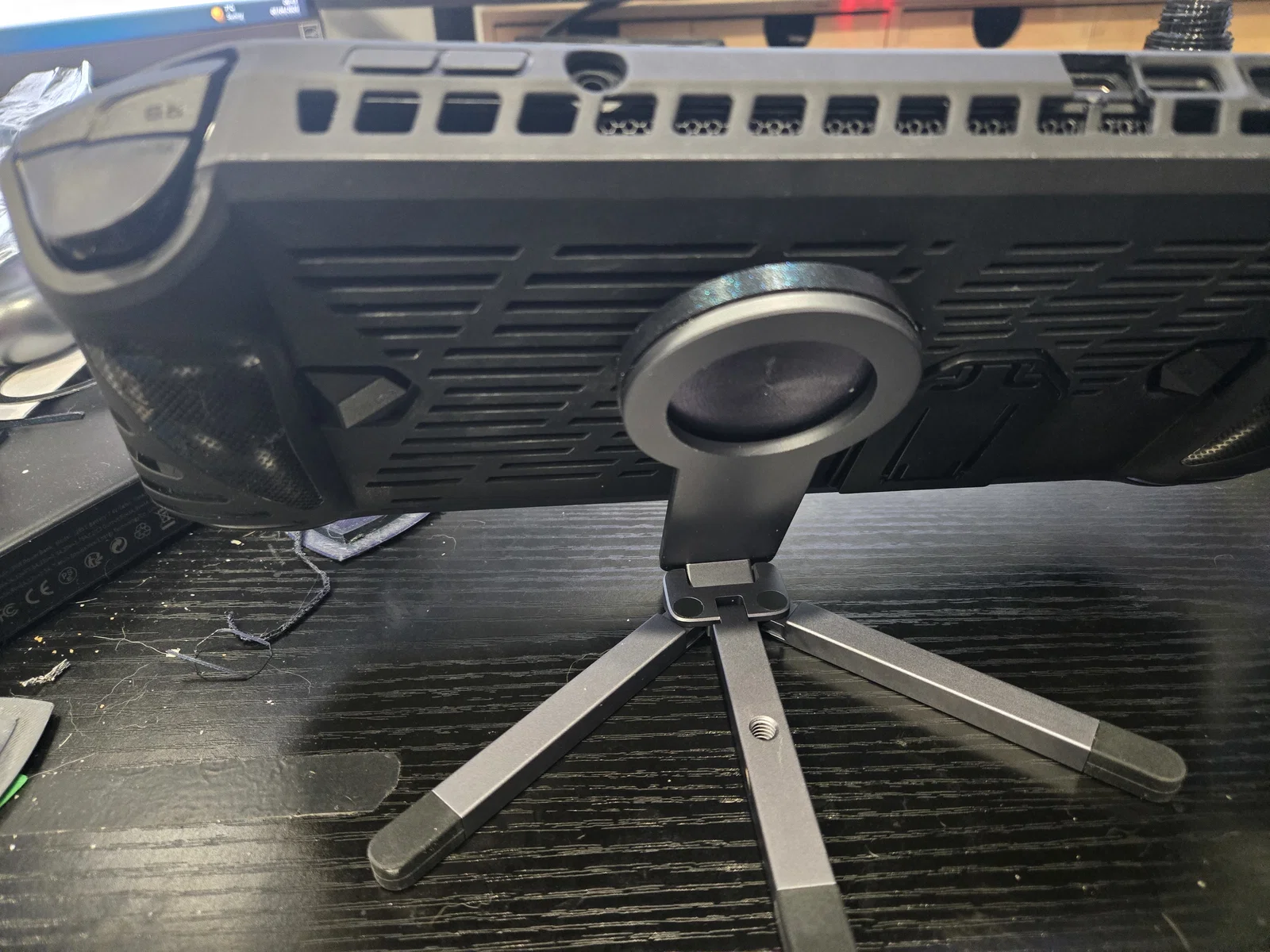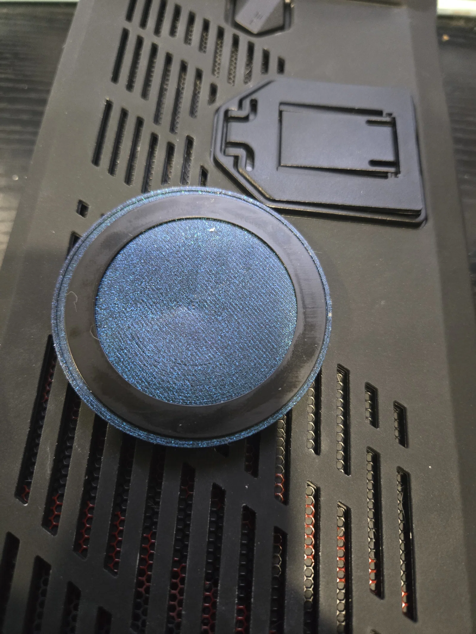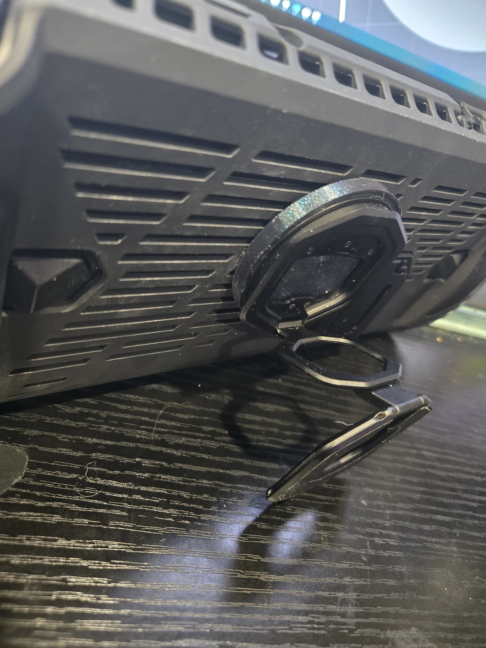 Kết hợp với mẫu đó, bạn có thể gắn thêm vòng kim loại tương thích MagSafe vào MSI Claw đang dùng kèm các loại ốp silicon phổ thông. Thực ra món này dùng cho bất cứ thiết bị nào có cùng ngàm JSAUX cũng được, nhưng mình cố ý làm lệch một chút để không bị cấn vào cái chân chống tích hợp của ốp. Nó dùng tốt với mọi loại vòng kim loại có đường kính lên tới 59mm (kích thước lớn nhất mình đang có ở nhà).