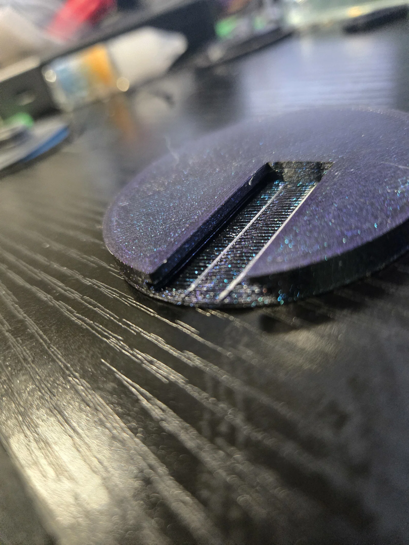 Nhờ công sức của SkTx (chứ mình không khéo tay đến mức đó), mẫu này đã được tạo sẵn support, bạn chỉ việc in xong rồi gỡ ra là xong. Mình khuyên dùng PLA vì nó đủ cứng cáp cho mục đích này, khỏi cần lỉnh kỉnh in ABS/ASA, lại còn tránh được mấy vấn đề khi dán vòng lên PETG.