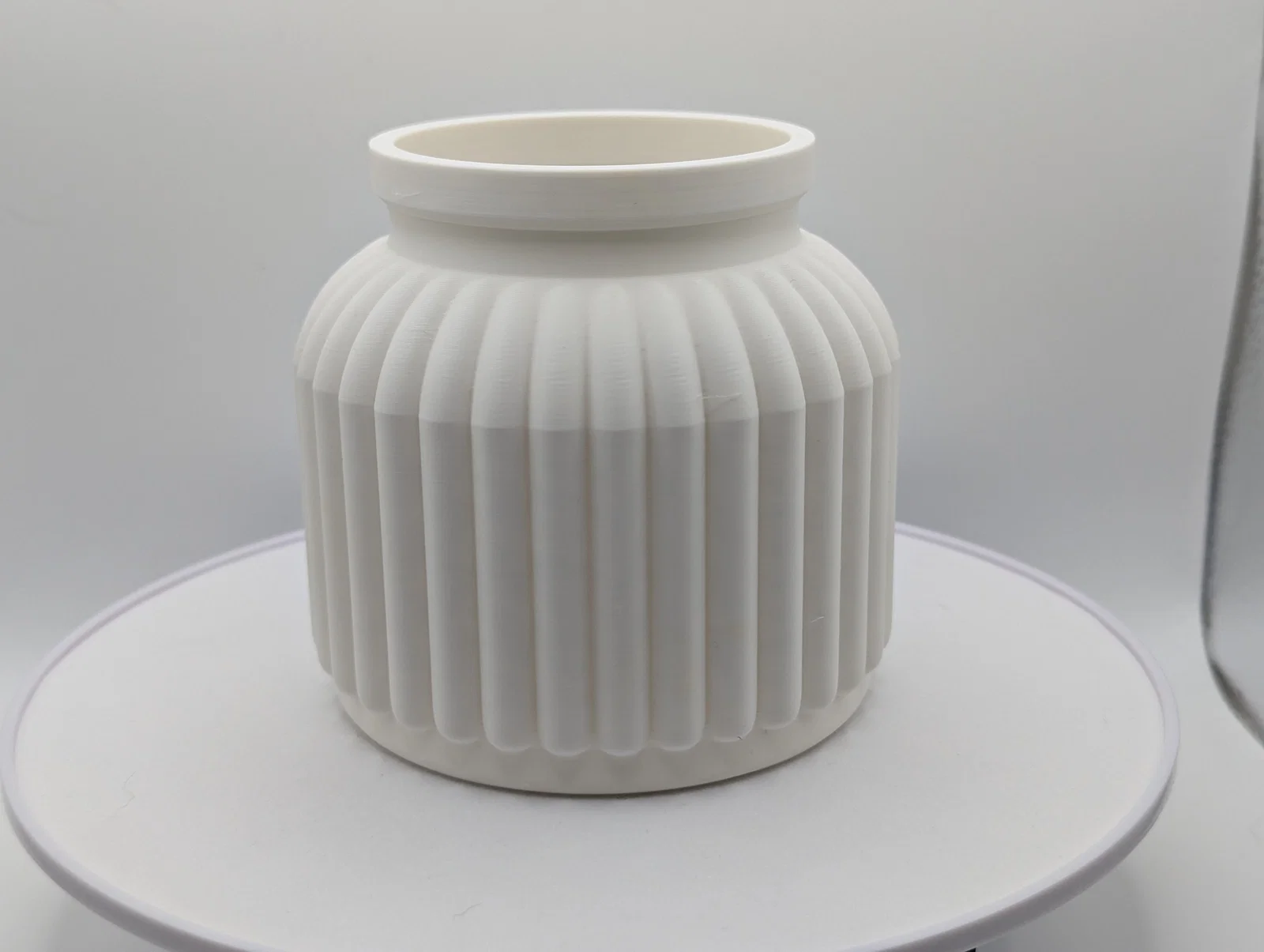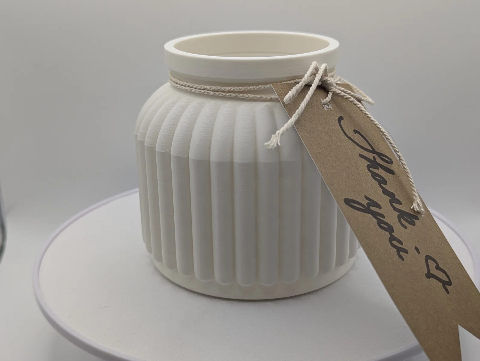Lưu ý về khả năng chống nước: Nếu in bằng PLA thì nó có thể kín nước trong một thời gian hoặc mãi mãi, mình cũng không chắc nữa. Tuy nhiên, mình từng dùng nhựa resin Alumlite Clearcast cho các bình hoa khác và thấy rất ổn, vì bề mặt bên trong mẫu này rất phẳng nên việc phủ resin sẽ khá dễ dàng. Mẫu này có thể dễ dàng phóng to hoặc thu nhỏ mà không mất chi tiết. Hình ảnh minh họa được in bằng nhựa màu trắng matte.