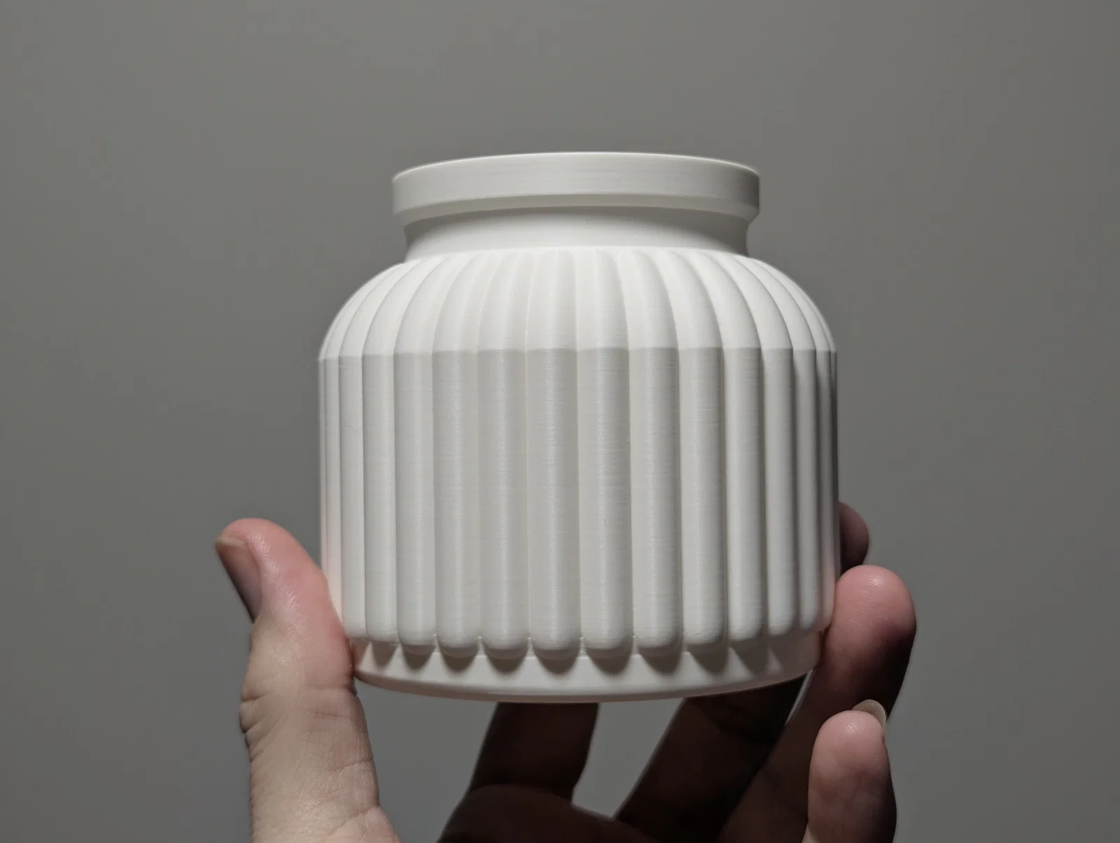Đây đúng là một mẫu chậu cây hiện đại và tinh tế. Với profile in của mình, mẫu này có độ cứng cáp và cảm giác chắc tay mà các sản phẩm in 3D thông thường hay bị thiếu. Bình luận đầu tiên trên mẫu gốc có hỏi "Nó có lỗ thoát nước không?" nên phiên bản này mình đã thêm một đĩa lót có sẵn lỗ. Mình không rành về làm vườn nên chỉ thêm 3 lỗ 10mm ở đáy bằng cách dùng tính năng negative part trong slicer. Nếu lỗ to hay nhỏ quá, bạn cứ tự ý điều chỉnh kích thước nhé! Nếu nhiều người cần, mình sẵn sàng thiết kế thêm một chiếc đĩa hứng nước đồng bộ.