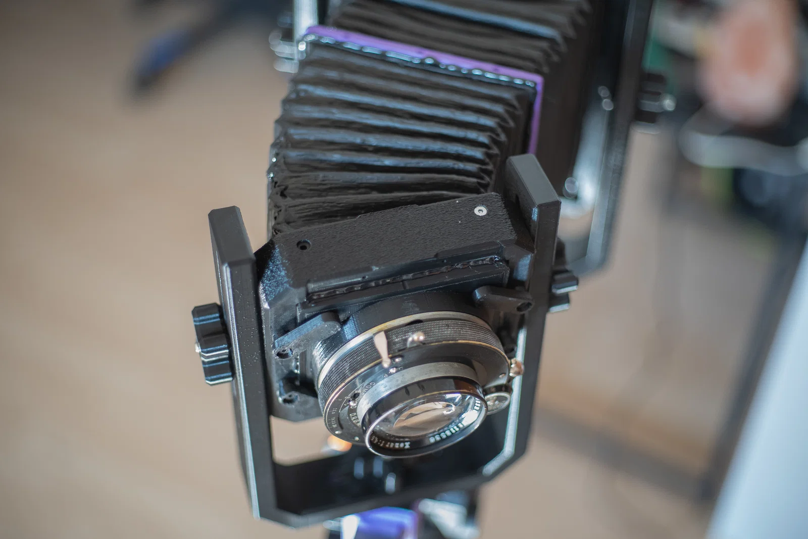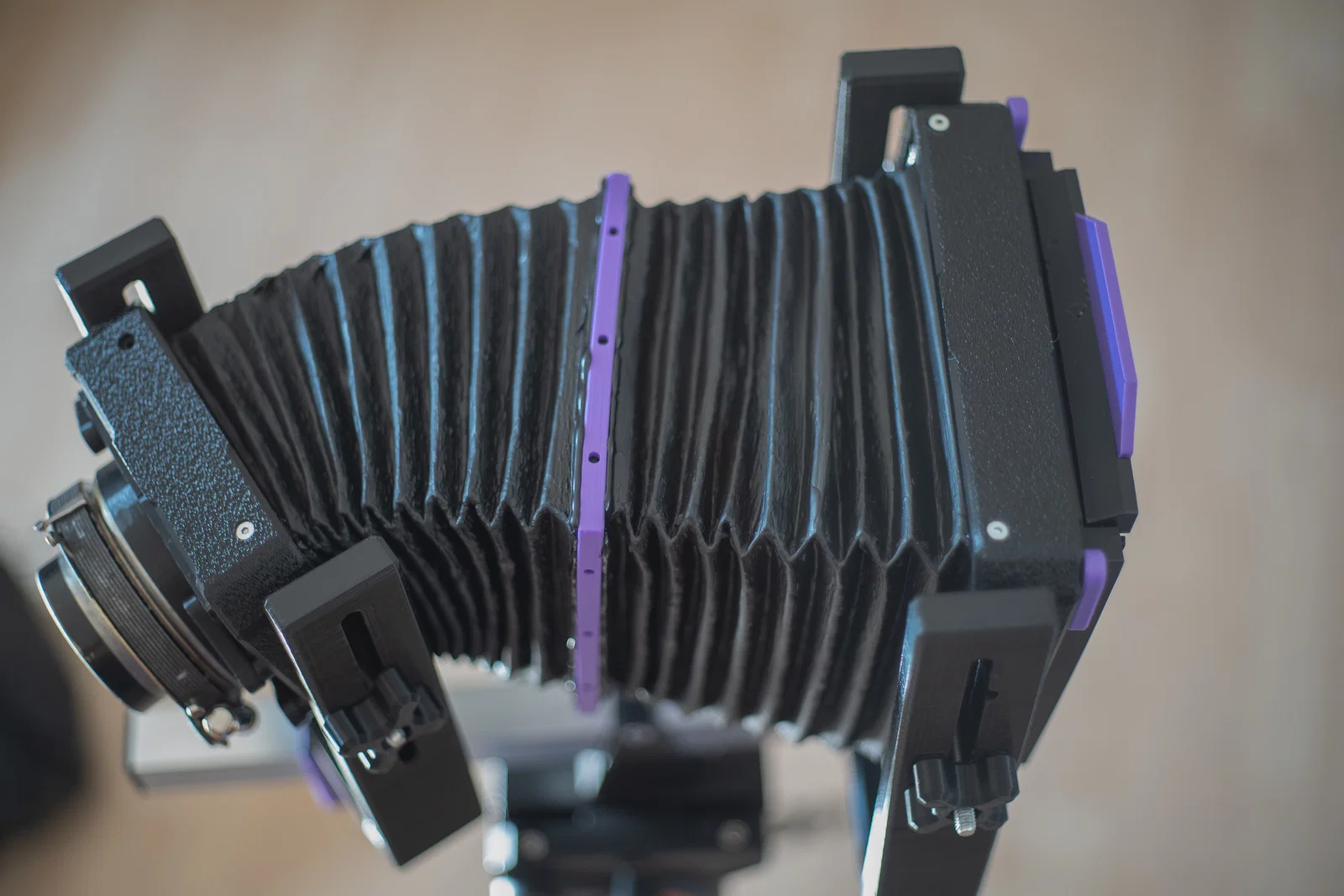 Mình đã lấy thiết kế gốc của chiếc Vega và cải tiến để phần ngàm chuyển thành dạng chữ U ôm từ hai bên, giúp máy ảnh ổn định hơn đáng kể khi thao tác. Rất khuyến khích sử dụng cùng với loại bellows cứng cáp hơn.