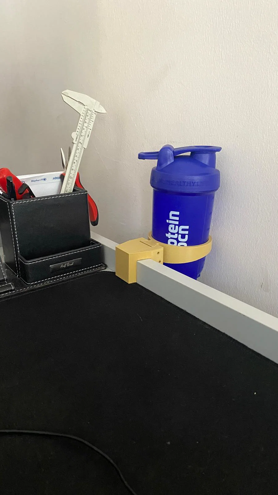 Đây là mẫu thiết kế 3D đơn giản và cực kỳ tiện dụng để gắn bình lắc protein ngay cạnh bàn làm việc của bạn. Sản phẩm giúp giữ bình nước luôn trong tầm tay, tiết kiệm diện tích mặt bàn và hạn chế tối đa nguy cơ bị đổ nước.