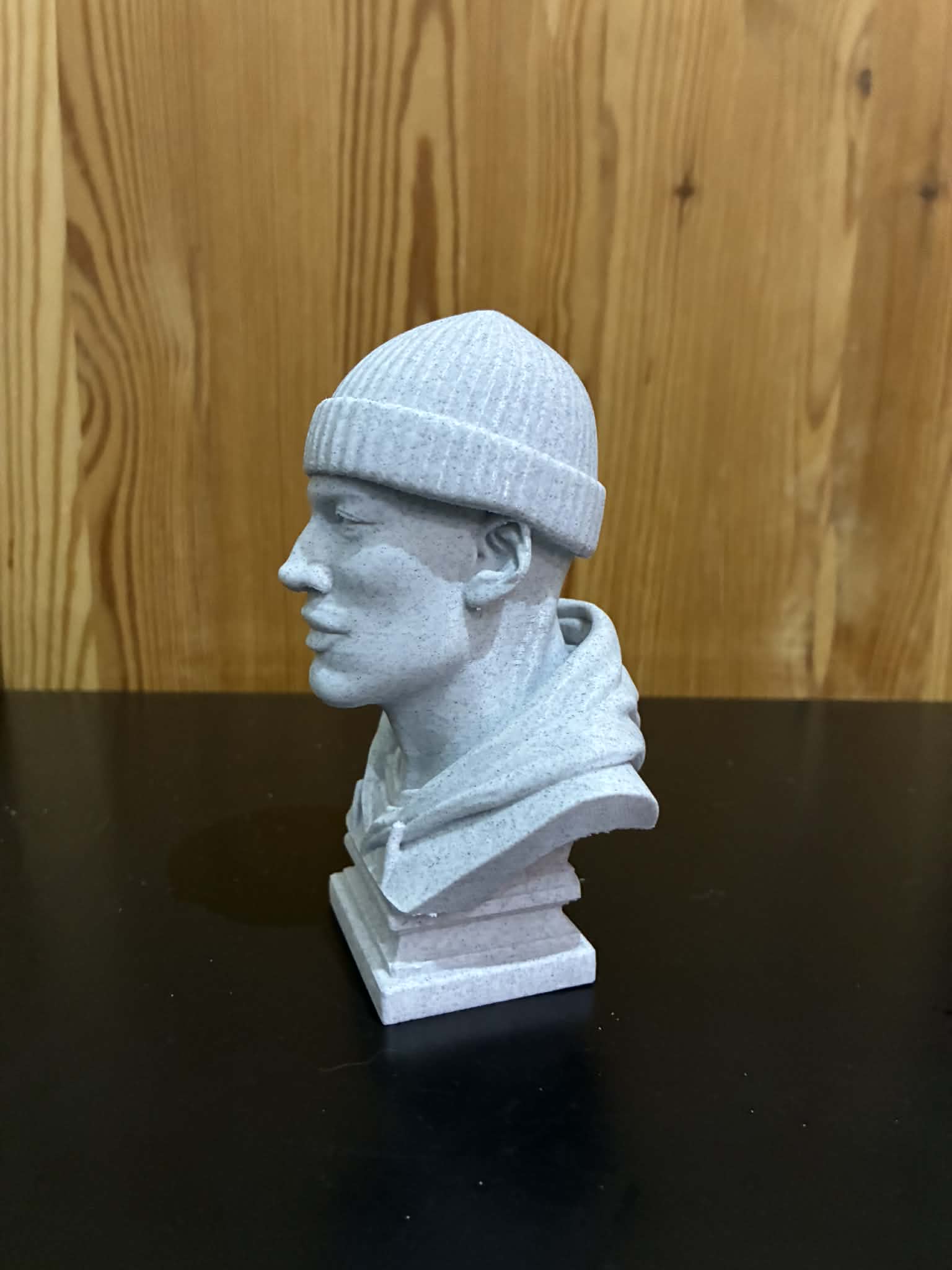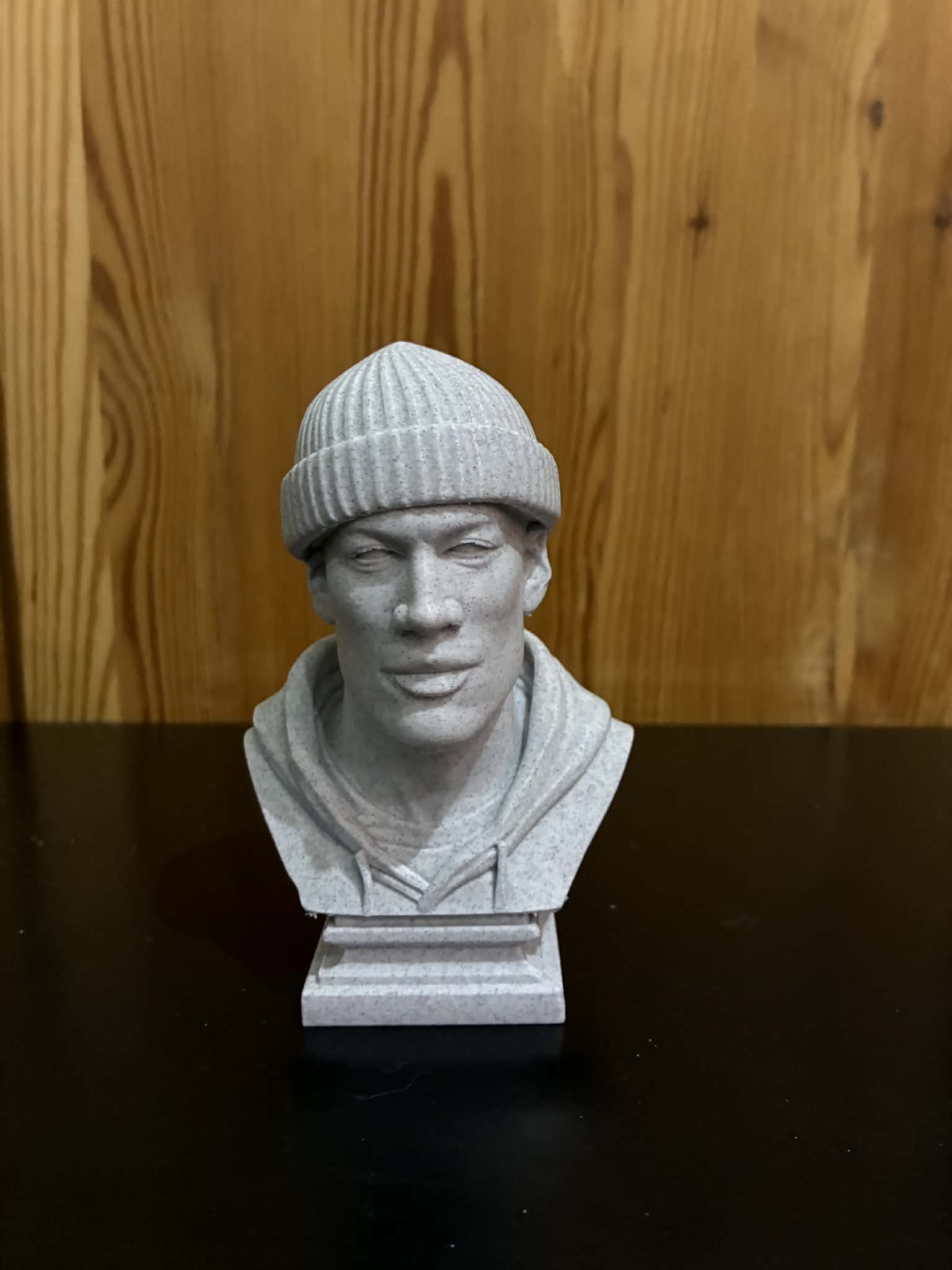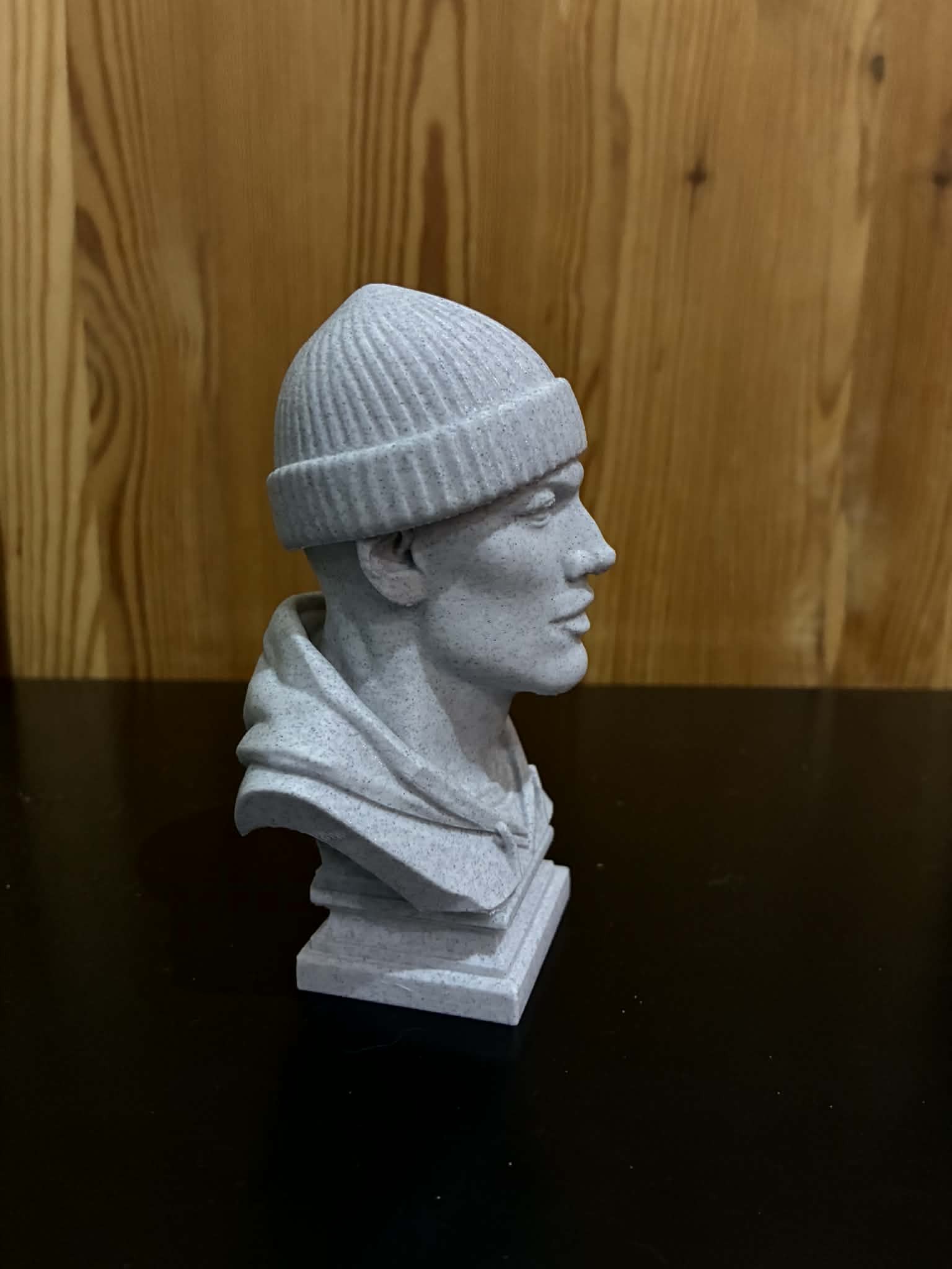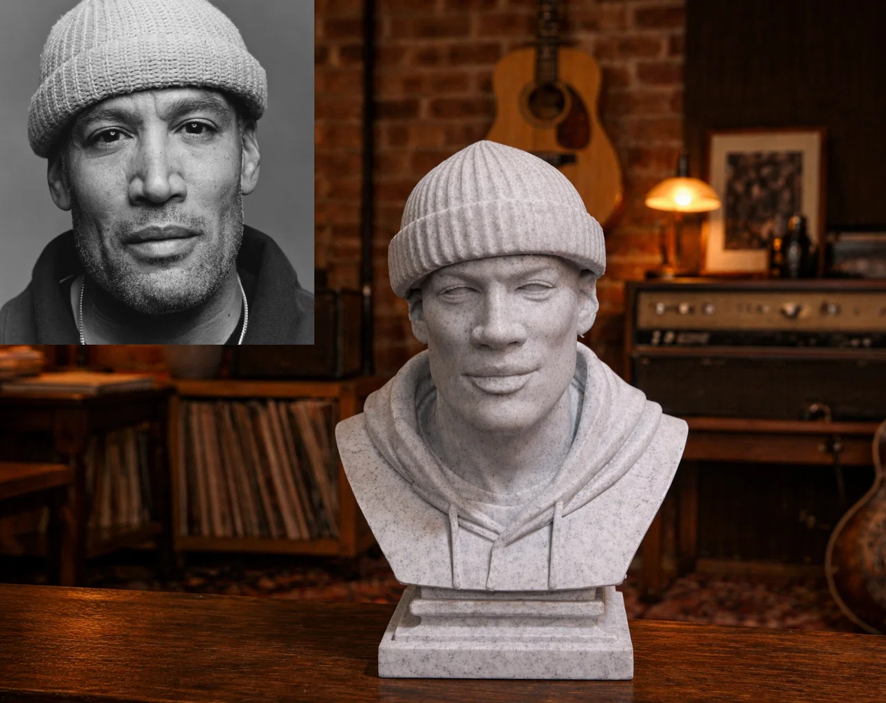 Đây là tượng bán thân của Ben Harper, một nghệ sĩ biểu tượng với phong cách kết hợp giữa folk, blues, rock và soul, được tái hiện trong tư thế đối diện đầy trầm tư và mạnh mẽ. Lấy cảm hứng từ bức ảnh nổi tiếng nhất của nhạc sĩ này, mẫu thiết kế làm nổi bật ánh nhìn sâu sắc và biểu cảm chân thật, phản ánh cả sự nhạy cảm trong nghệ thuật lẫn tâm huyết cá nhân của anh.