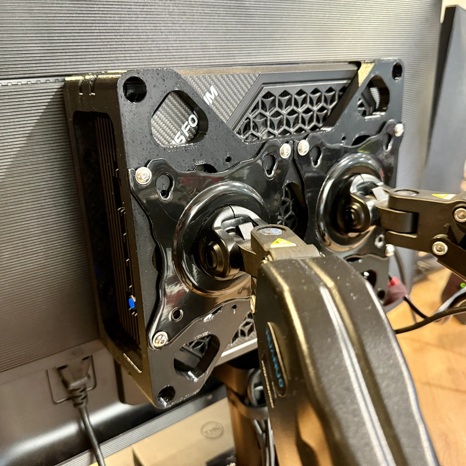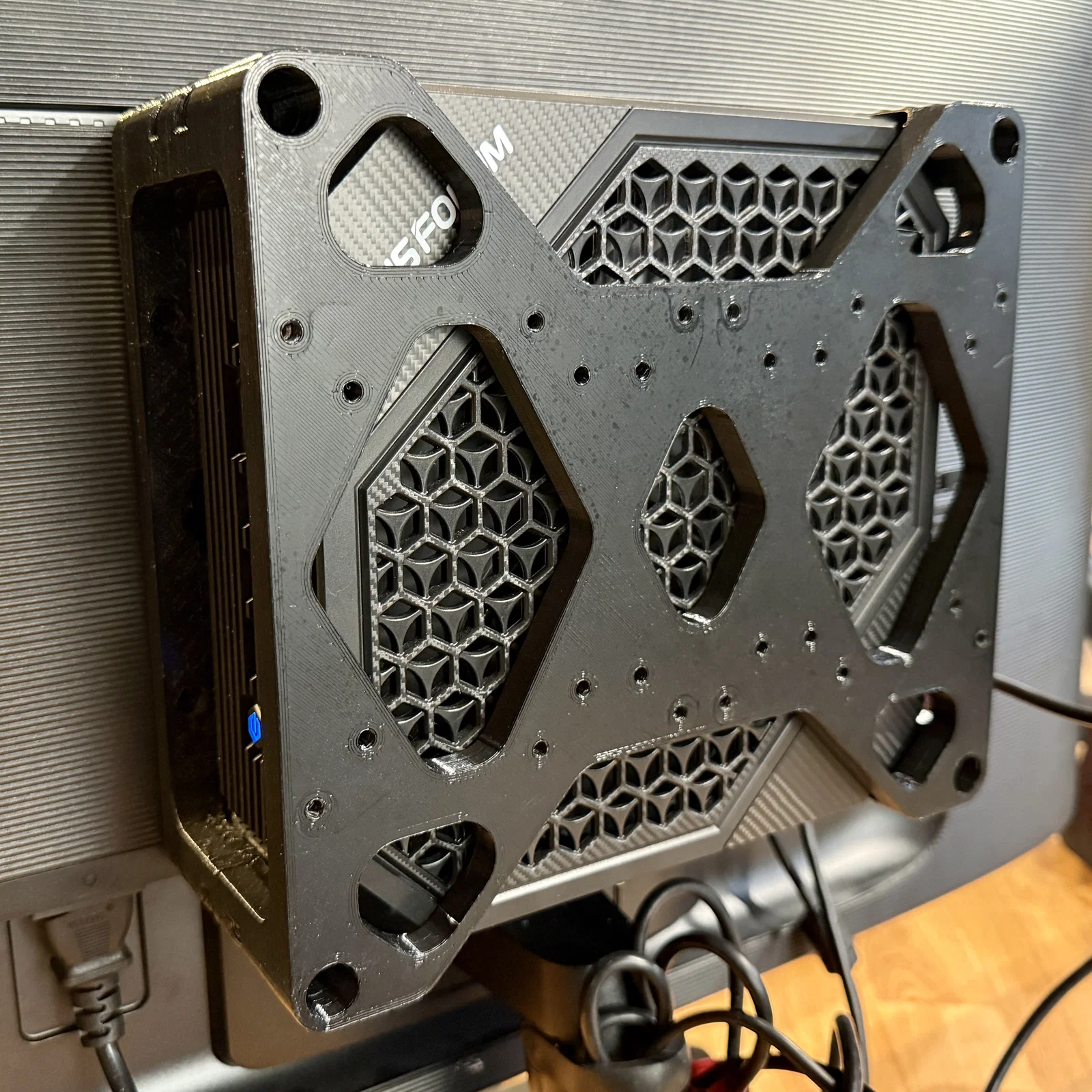 Cái khung này được thiết kế riêng để gắn máy tính mini Minisforum HX99G vào màn hình. Mình dùng nó để giữ máy tính gọn gàng gần khu vực làm việc, giúp giải phóng không gian bàn làm việc và nếu bạn lắp giống mình thì nó còn đóng vai trò như một bộ phận ổn định màn hình nữa đấy!