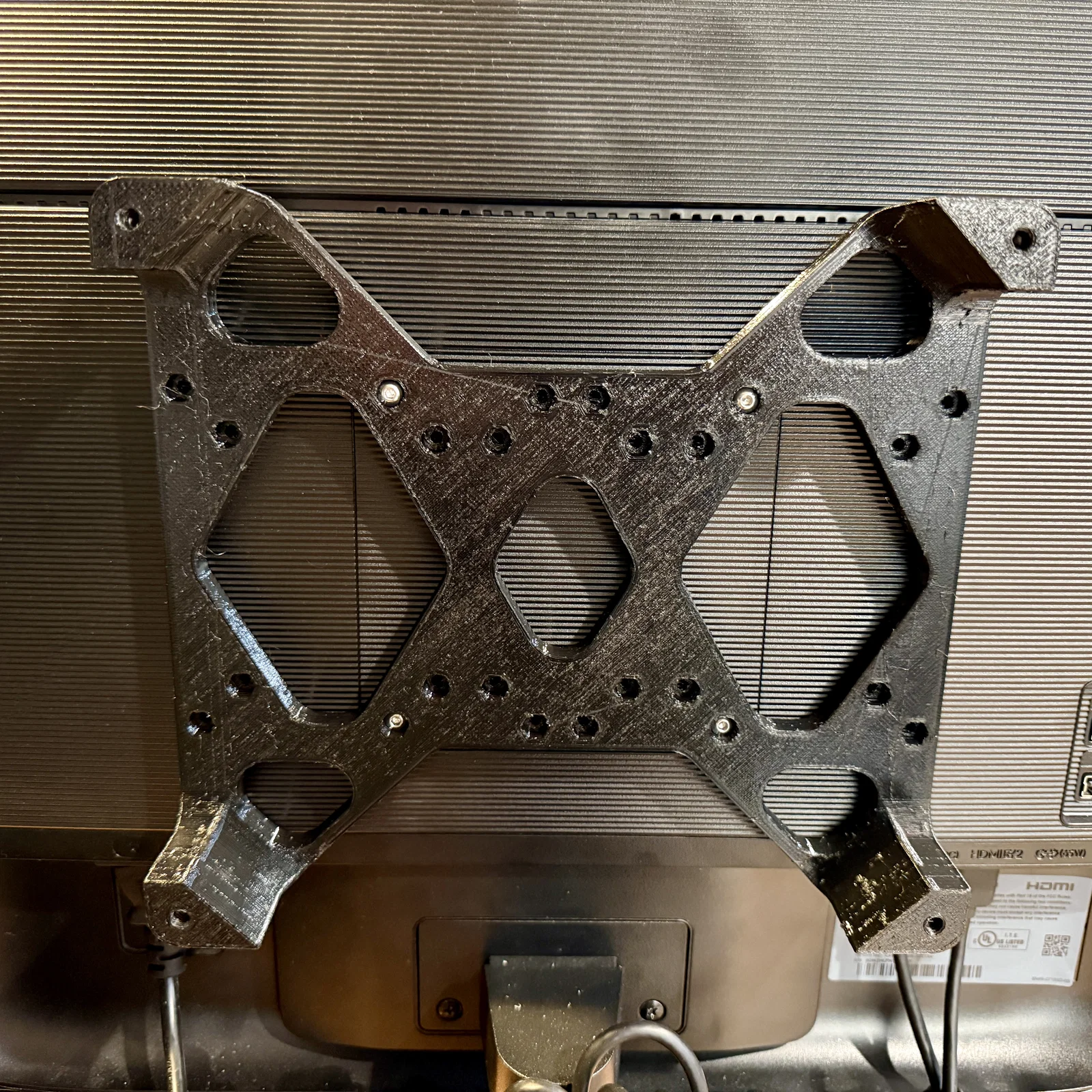 Để lắp ráp, bạn hãy in 2 bản sao của khung này. Bạn có thể làm theo hình ảnh hướng dẫn đính kèm. Thiết kế này có thể dùng cho cả hai bên khung. Nếu gắn vào màn hình, hãy bắt vít bên đó trước bằng 4 ốc M4. Ở bên đó, bạn đặt các đai ốc M6 vào khe như trong ảnh. Giữ máy tính vào đúng vị trí, đặt nửa còn lại của khung lên trên, rồi luồn ốc M6 xuyên qua cả hai nửa để siết chặt vào các đai ốc ở phía đối diện.