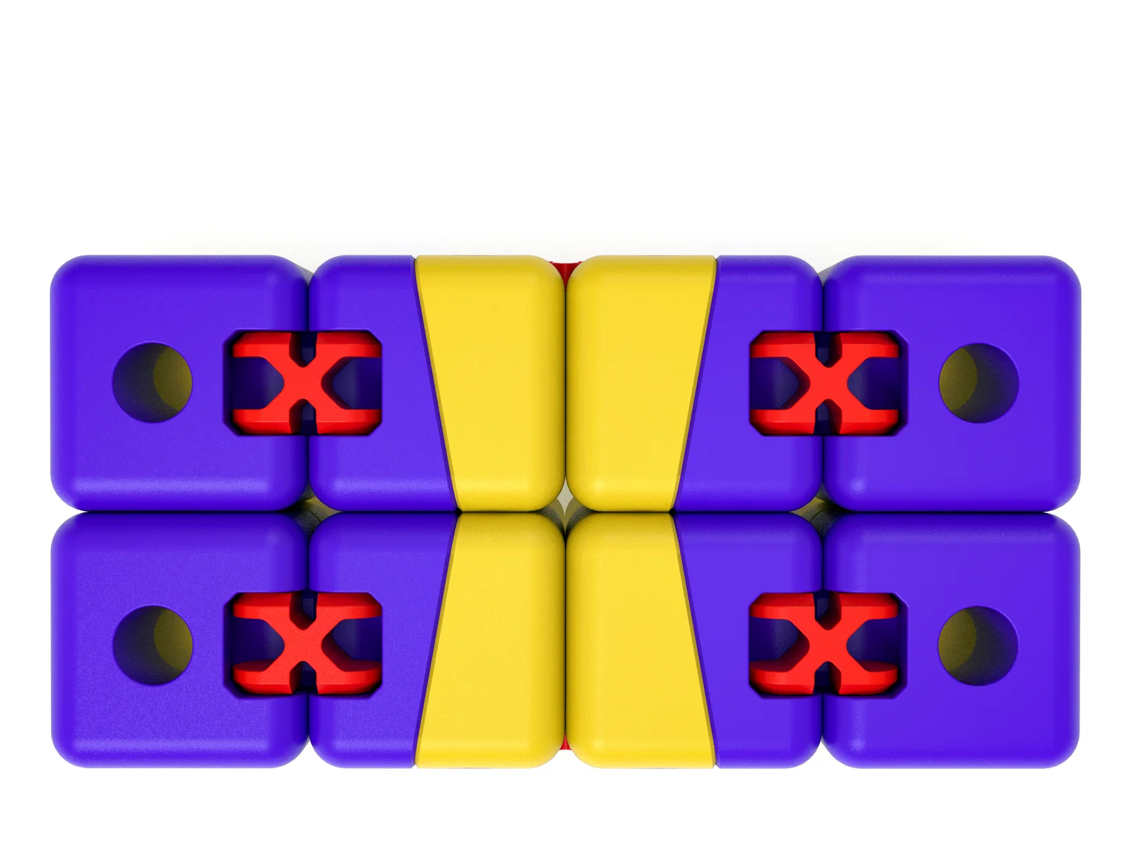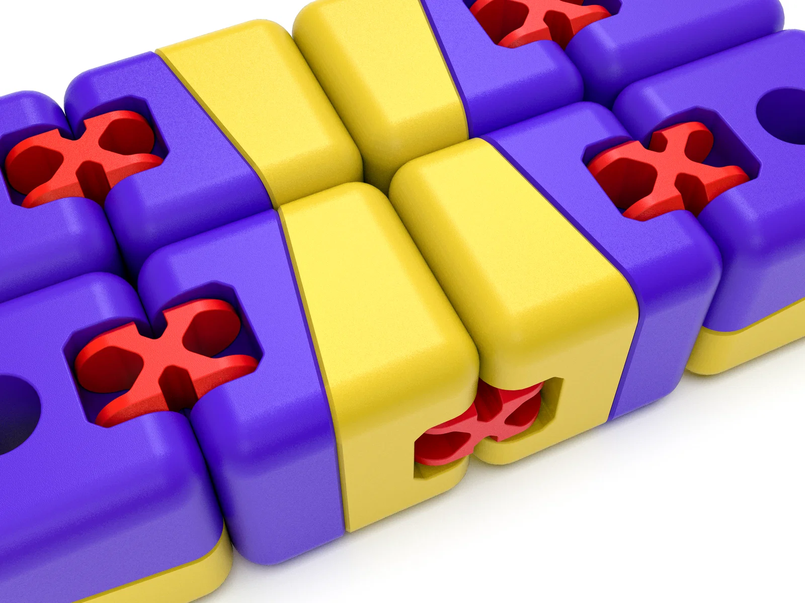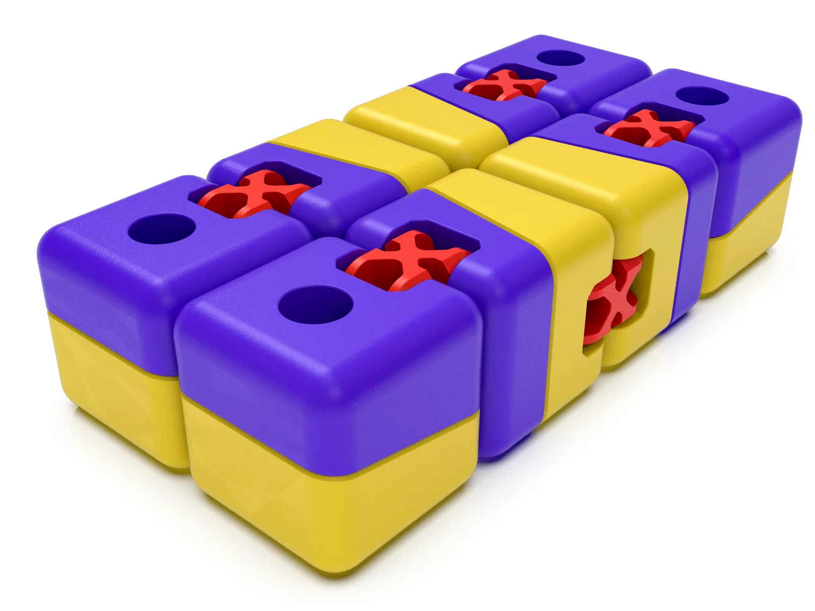 - Thiết kế khớp nối thông minh: Các khớp nối dạng "X" được thiết kế để đảm bảo sự linh hoạt tối đa, cho phép các khối xoay tự do mà không bị kẹt.